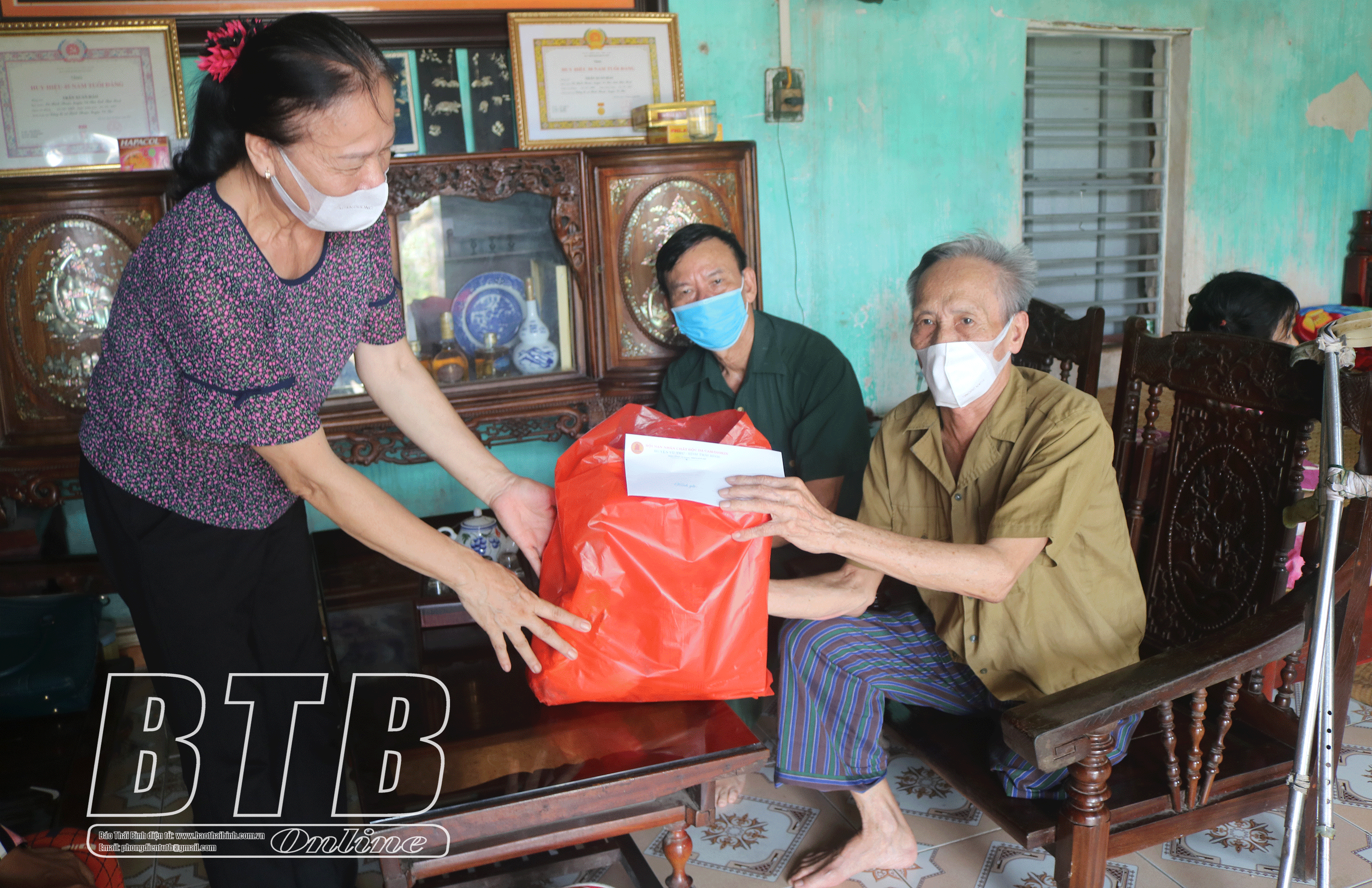 Đại diện Hội Nạn nhân chất độc da cam/Điôxin huyện Vũ Thư thăm, tặng quà gia đình ông Trần Xuân Hảo, thôn Bách Tính, xã Bách Thuận có 4 thế hệ bị nhiễm chất độc da cam.