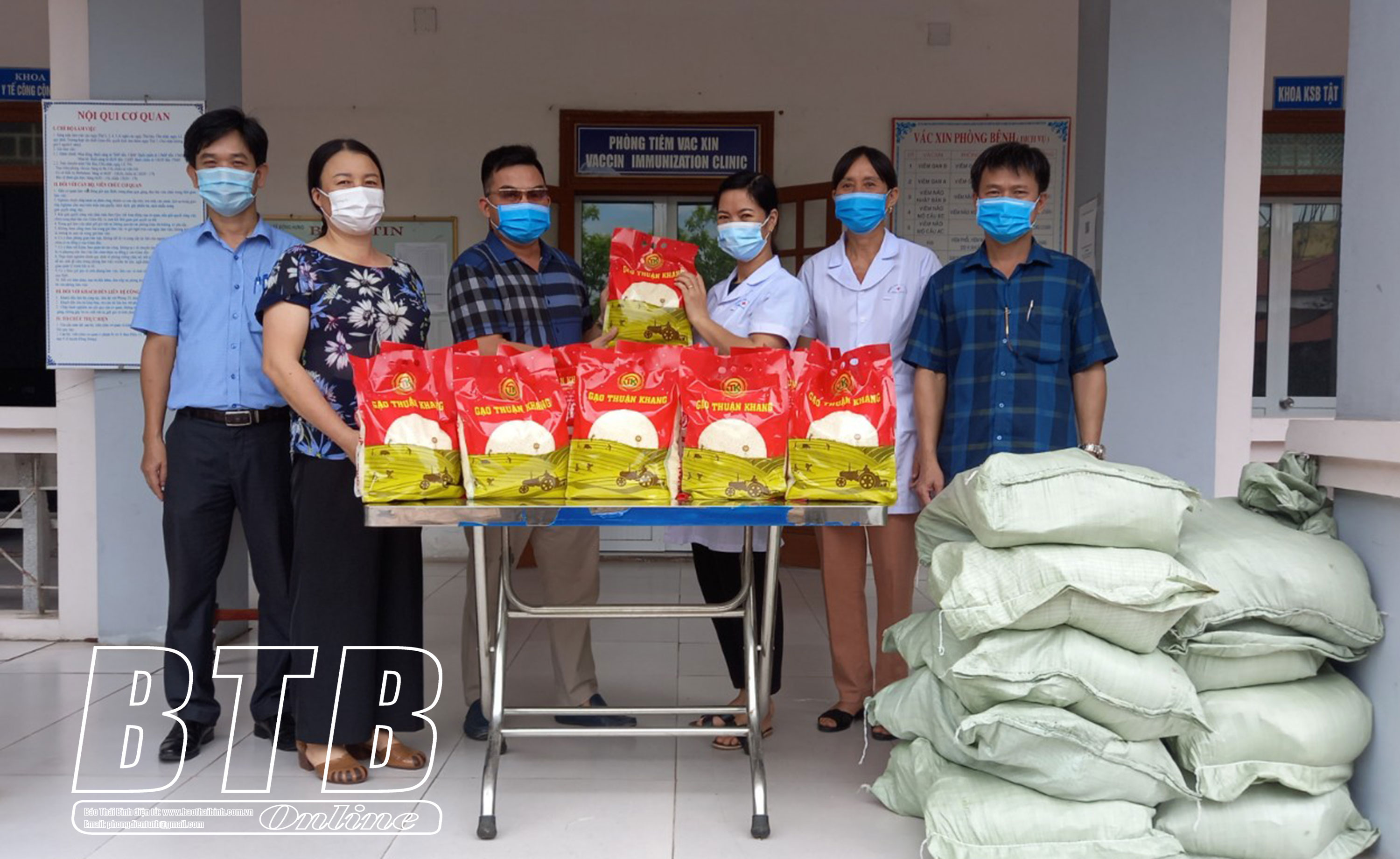 Công ty TNHH Thuận Khang trao gạo ủng hộ cho Trung tâm Y tế huyện Đông Hưng.