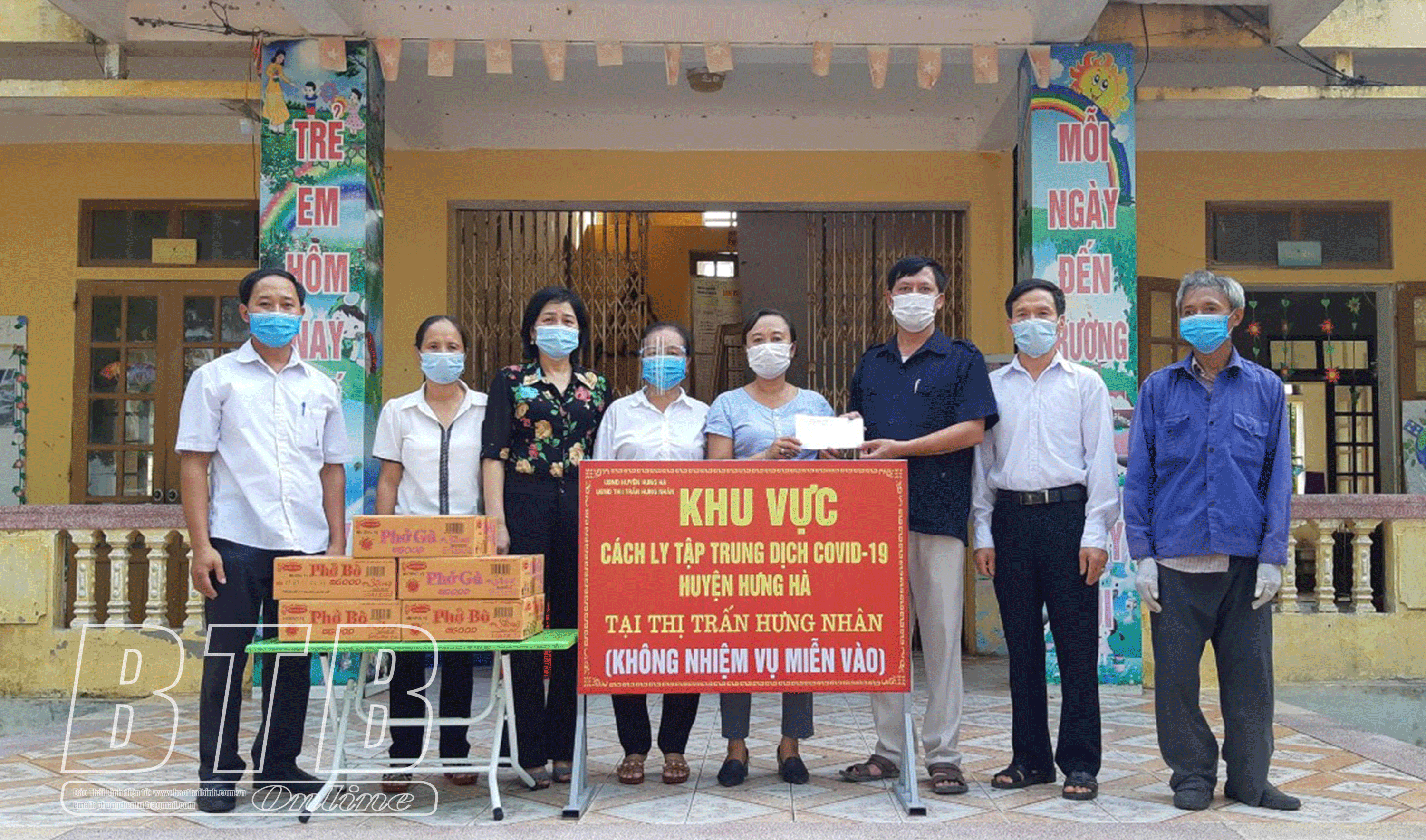 Hội Liên hiệp Phụ nữ huyện Hưng Hà tặng quà cho khu cách ly tập trung của huyện tại Trường Mầm non thị trấn Hưng Nhân.