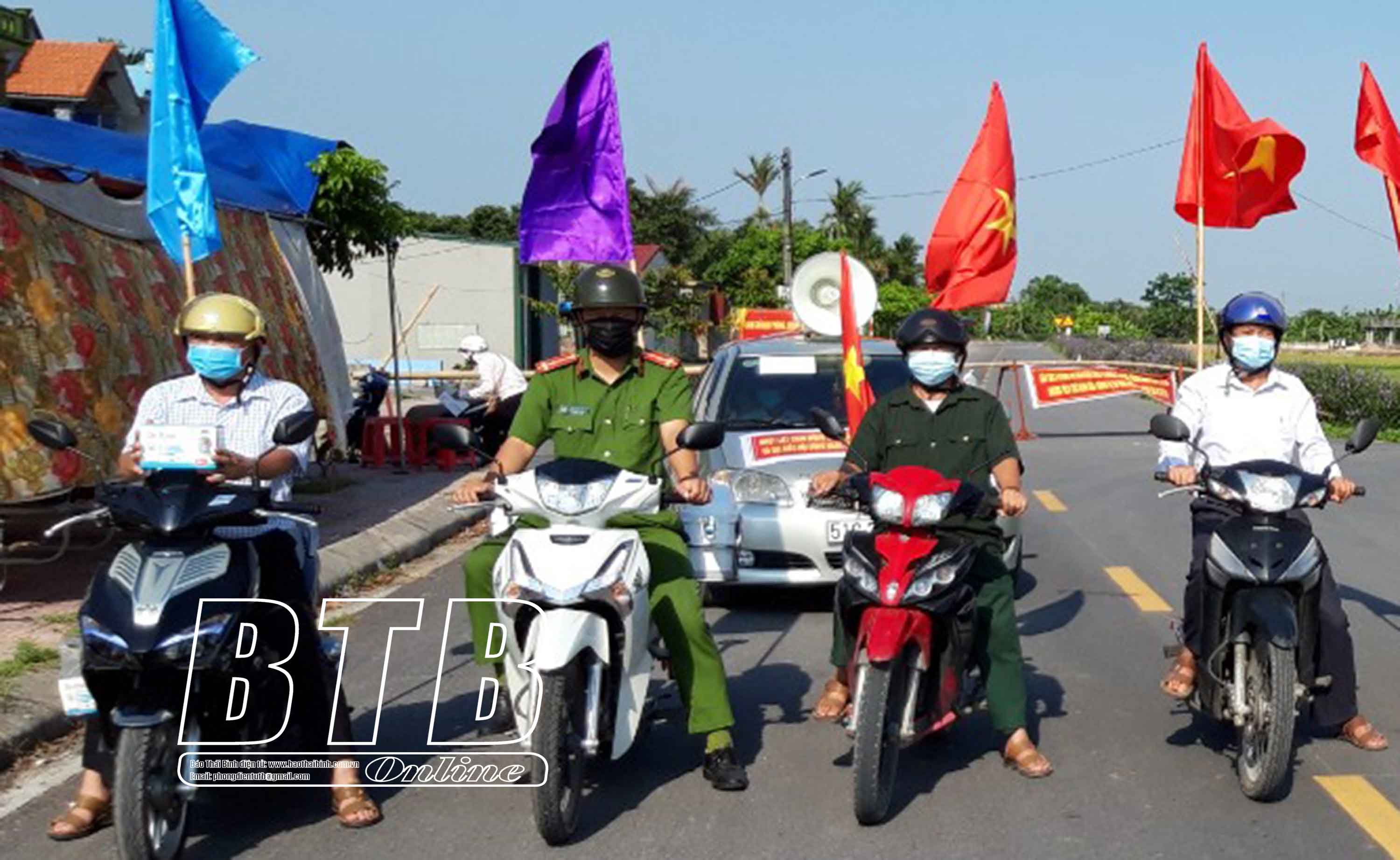 Hội viên Hội Cựu chiến binh phường Hoàng Diệu (thành phố Thái Bình) tham gia chốt kiểm soát dịch Covid-19.