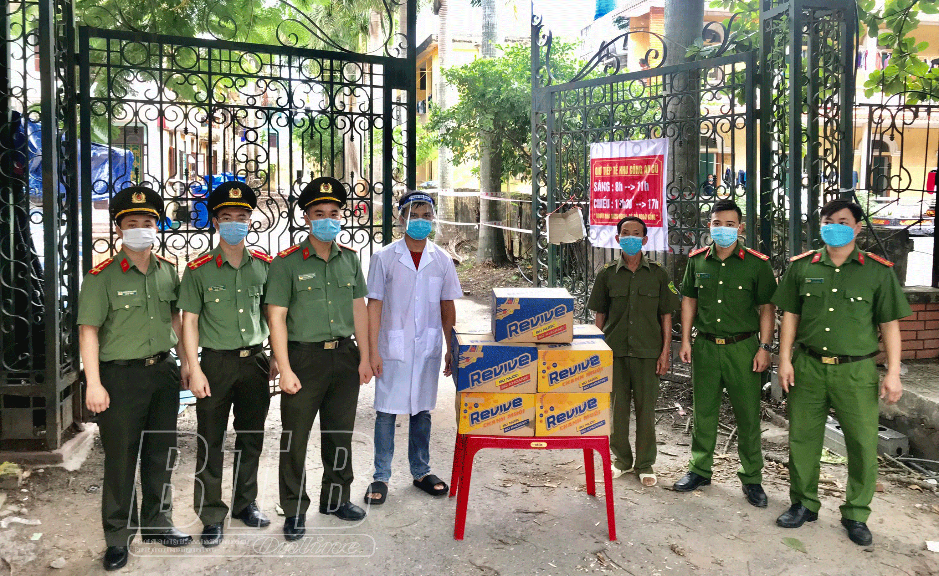 Đoàn Thanh niên Công an tỉnh trao quà cho lực lượng làm nhiệm vụ tại khu cách ly tập trung thị trấn Tiền Hải (Tiền Hải).