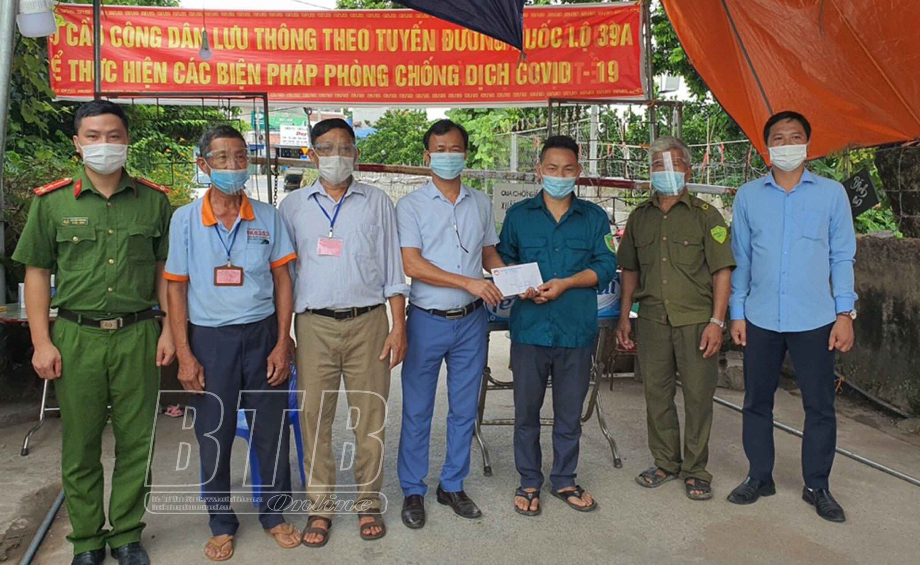 MTTQ huyện Hưng Hà trao quà cho lực lượng làm công tác phòng, chống dịch trên địa bàn xã Tân Lễ, huyện Hưng Hà.