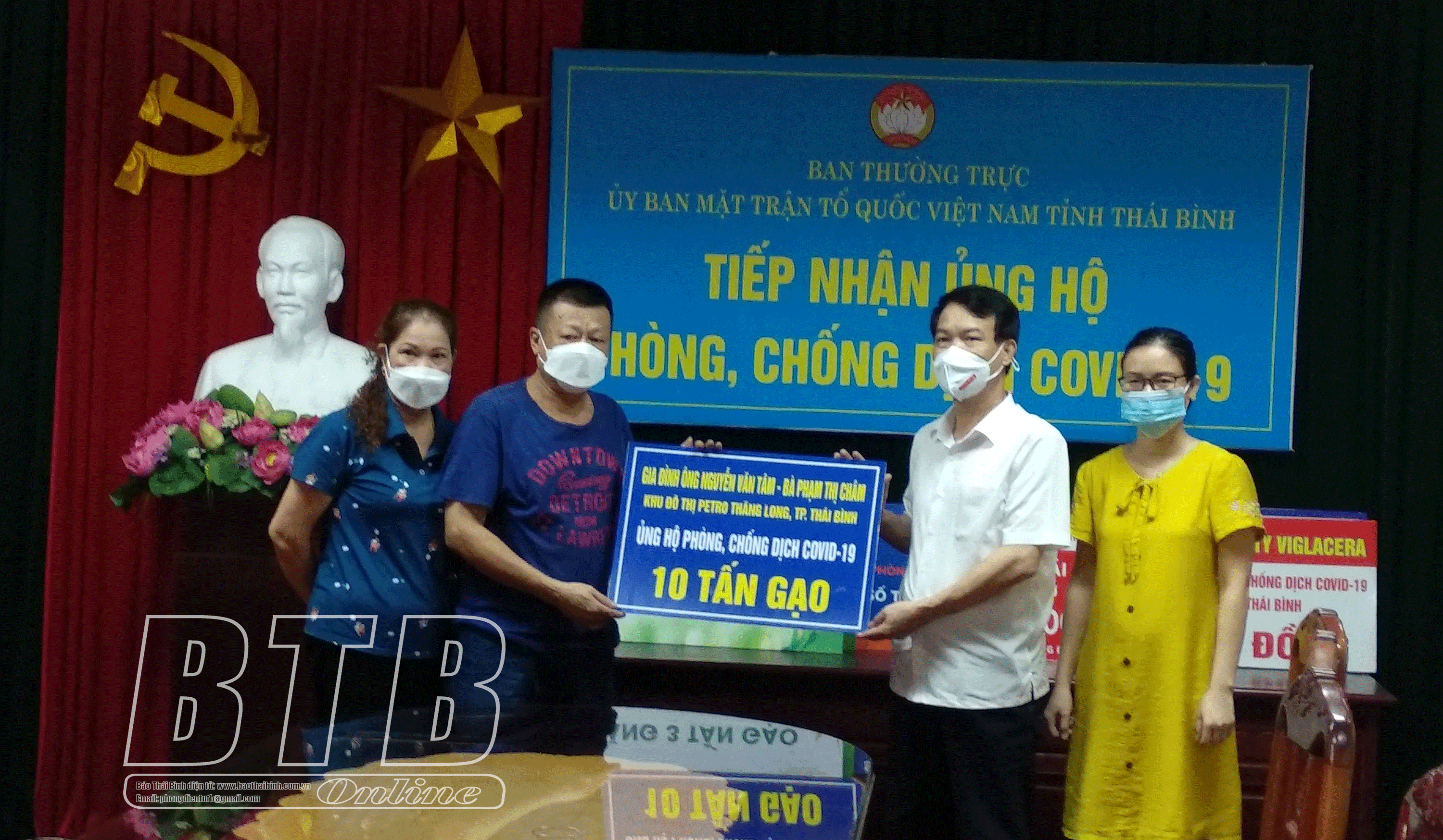Theo đó, Công ty TNHH Xây dựng MANDACONS ủng hộ 50 triệu đồng, Tập đoàn Lộc Trời chi nhánh BVTV An Giang tại Thái Bình ủng hộ 3 tấn gạo; gia đình ông, bà Nguyễn Văn Tâm, Phạm Thị Châm (Khu đô thị Petro Thăng Long, thành phố Thái Bình) ủng hộ 10 tấn gạo và đã được chuyển hỗ trợ đồng bào Thành phố Hồ Chí Minh chống dịch Covid-19.