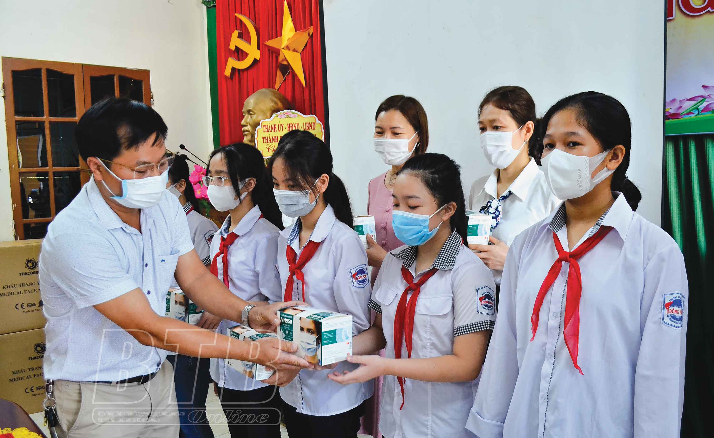 Để bảo đảm an toàn cho năm học 2021 - 2022, cùng với việc vệ sinh, khử khuẩn toàn bộ trường lớp, dụng cụ giảng dạy của các nhà trường, bảo đảm môi trường thông thoáng, UBND thành phố đã chỉ đạo các trường xây dựng quy chế phòng, chống dịch trong học đường, tạo sự liên kết trách nhiệm giữa nhà trường và phụ huynh. Nhân dịp khai giảng năm học mới, UBND thành phố đã huy động các doanh nghiệp trên địa bàn tặng gần 400.000 khẩu trang cho học sinh, giáo viên với sự tham gia trách nhiệm của nhiều doanh nghiệp như: Công ty Cổ phần Việt Xô gas, Công ty TNHH Dệt may xuất khẩu Thành Công, Công ty Cổ phần Xây dựng HiTech, Công ty Cổ phần Đầu tư xây lắp dầu khí Thăng Long, Công ty Cổ phần Thương mại Thành Đạt, Công ty TNHH Mạnh Hiển... Theo ông Trương Văn Hiển, Giám đốc Công ty TNHH Mạnh Hiển, công tác xã hội, từ thiện đã trở thành một phần không thể thiếu trong hoạt động của Công ty. Trong giai đoạn khó khăn này, bằng sức lực và khả năng của mình, dù ít hay nhiều, chúng tôi phải có những hành động cụ thể để đóng góp vào công tác phòng, chống dịch của thành phố, thể hiện trách nhiệm và góp phần làm lan tỏa tinh thần chung tay với các cấp, các ngành đẩy lùi Covid-19.