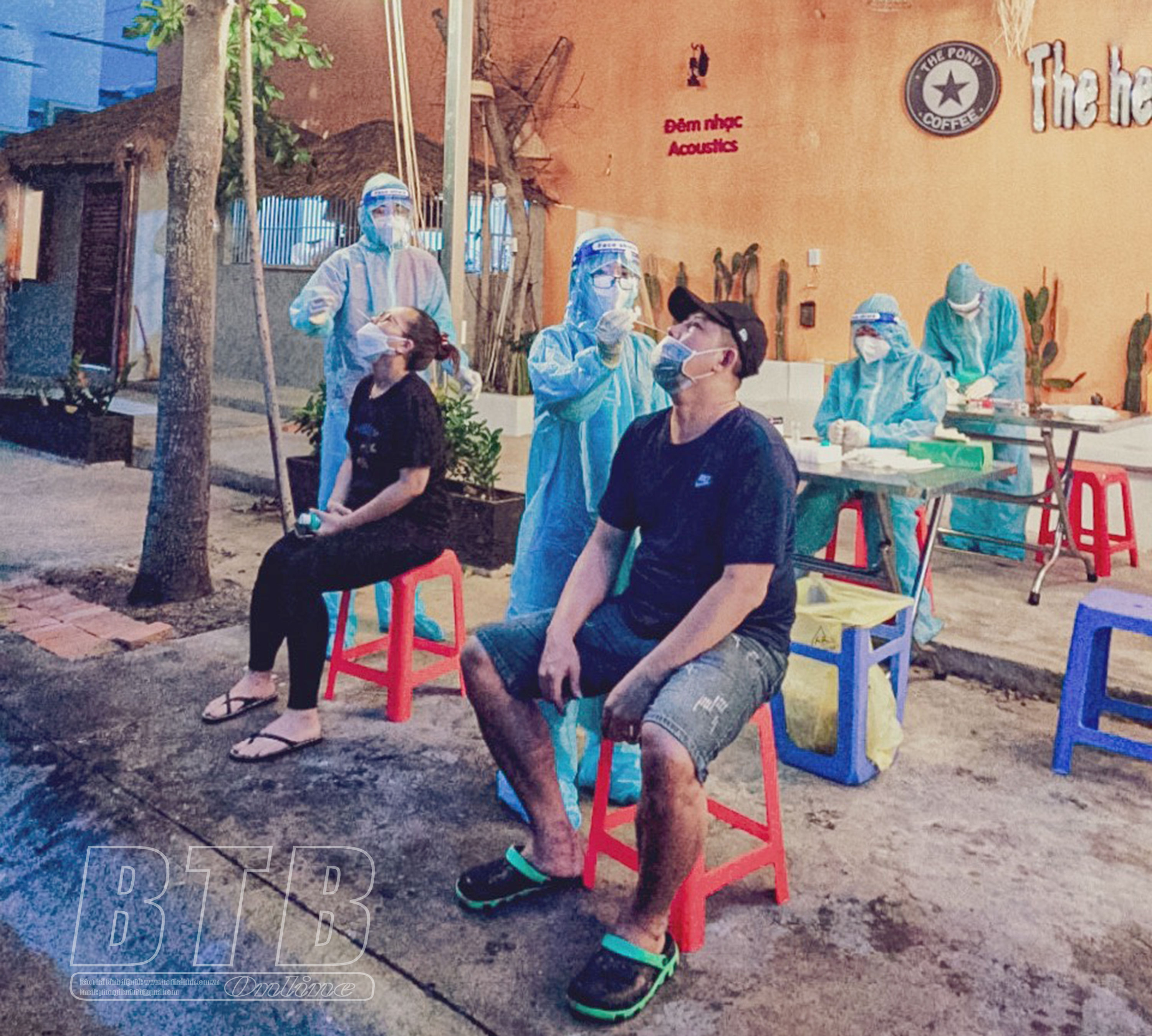 Sinh viên Trường Đại học Y Dược Thái Bình lấy mẫu xét nghiệm cho người dân Thành phố Hồ Chí Minh.
