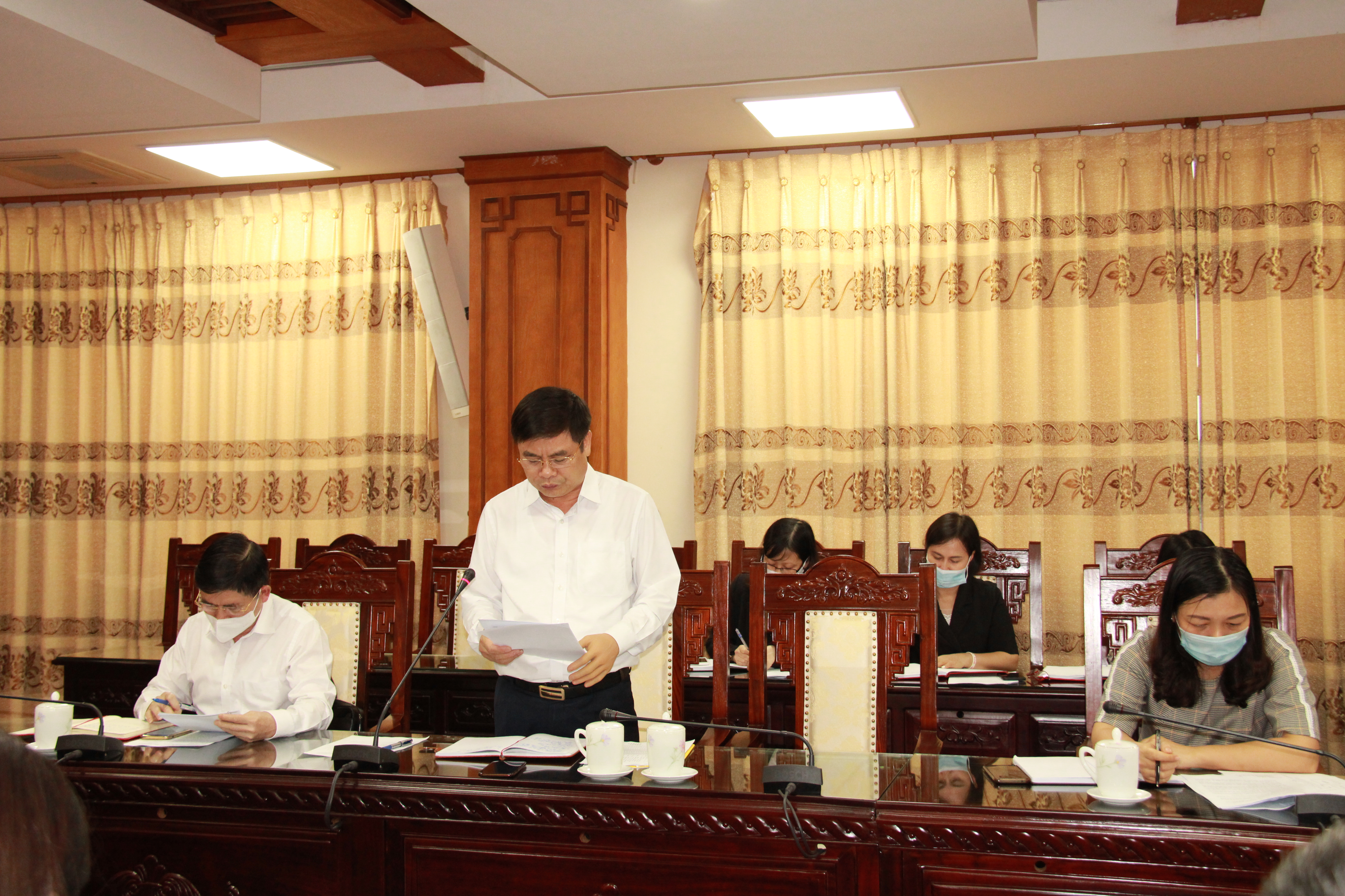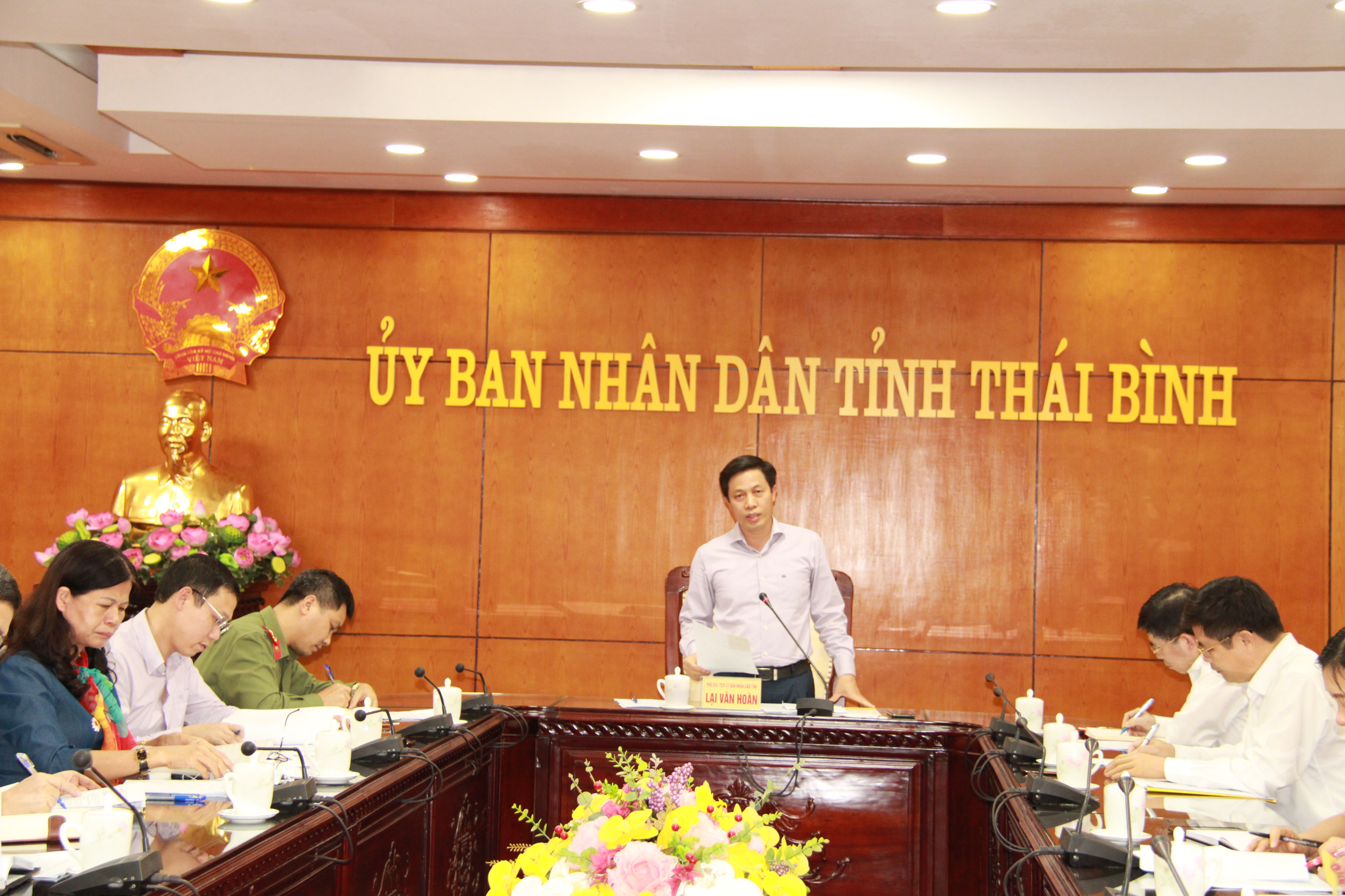 Đồng chí Phạm Văn Tuân, Ủy viên Ban Thường vụ, Trưởng ban Tổ chức Tỉnh ủy dự họp. Đồng chí Lại Văn Hoàn, Tỉnh ủy viên, Phó Chủ tịch UBND tỉnh, Chủ tịch Hội đồng tuyển dụng công chức tỉnh chủ trì cuộc họp.