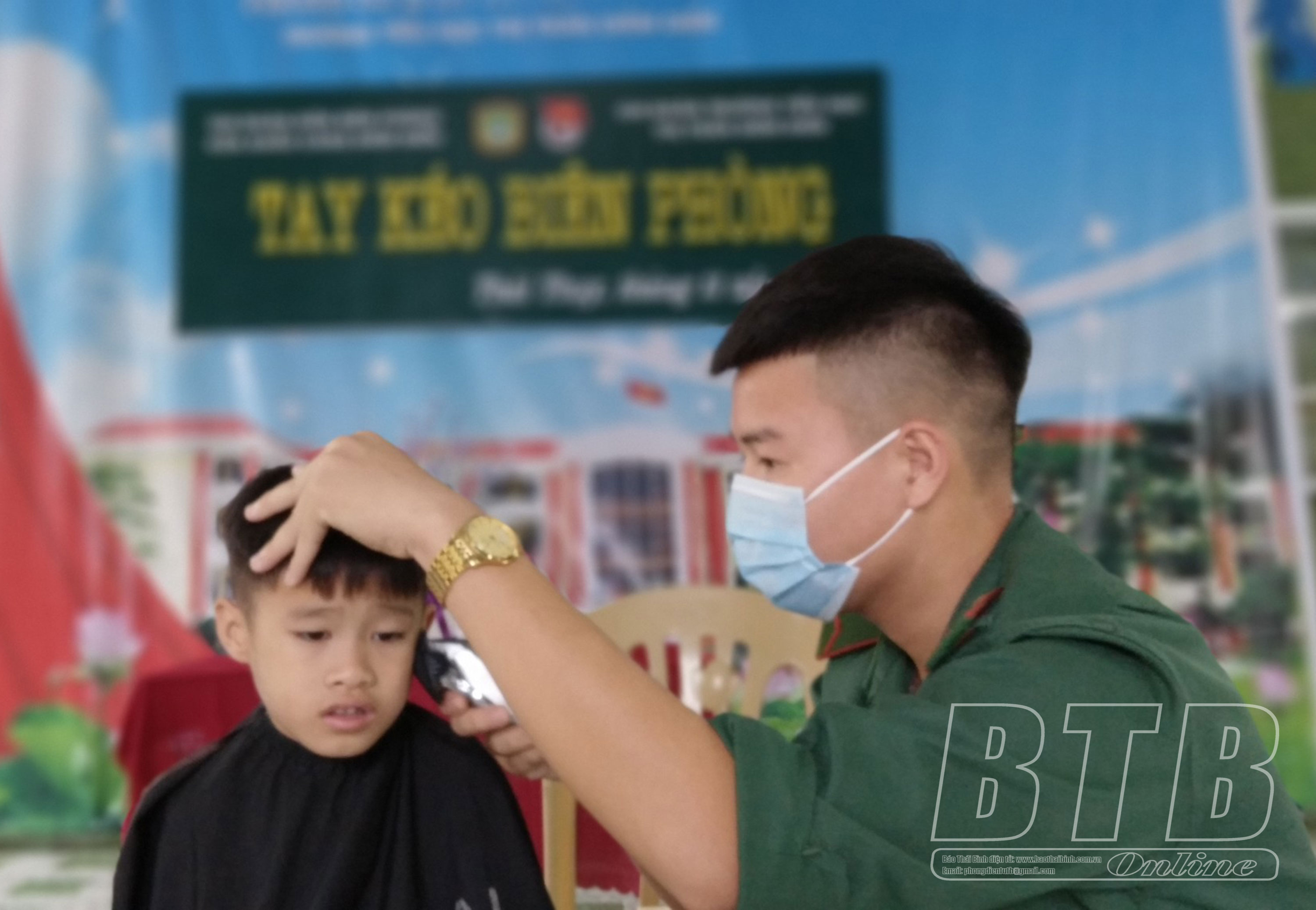 Thực hiện mô hình Tay kéo biên phòng, trong 2 ngày 3, 4/11, tổ cắt tóc của Chi đoàn Đồn Biên phòng Cửa khẩu cảng Diêm Điền phối hợp với tay kéo của địa phương triển khai cắt tóc miễn phí cho trên 130 em học sinh của Trường Tiểu học Thị trấn Diêm Điền, huyện Thái Thụy.