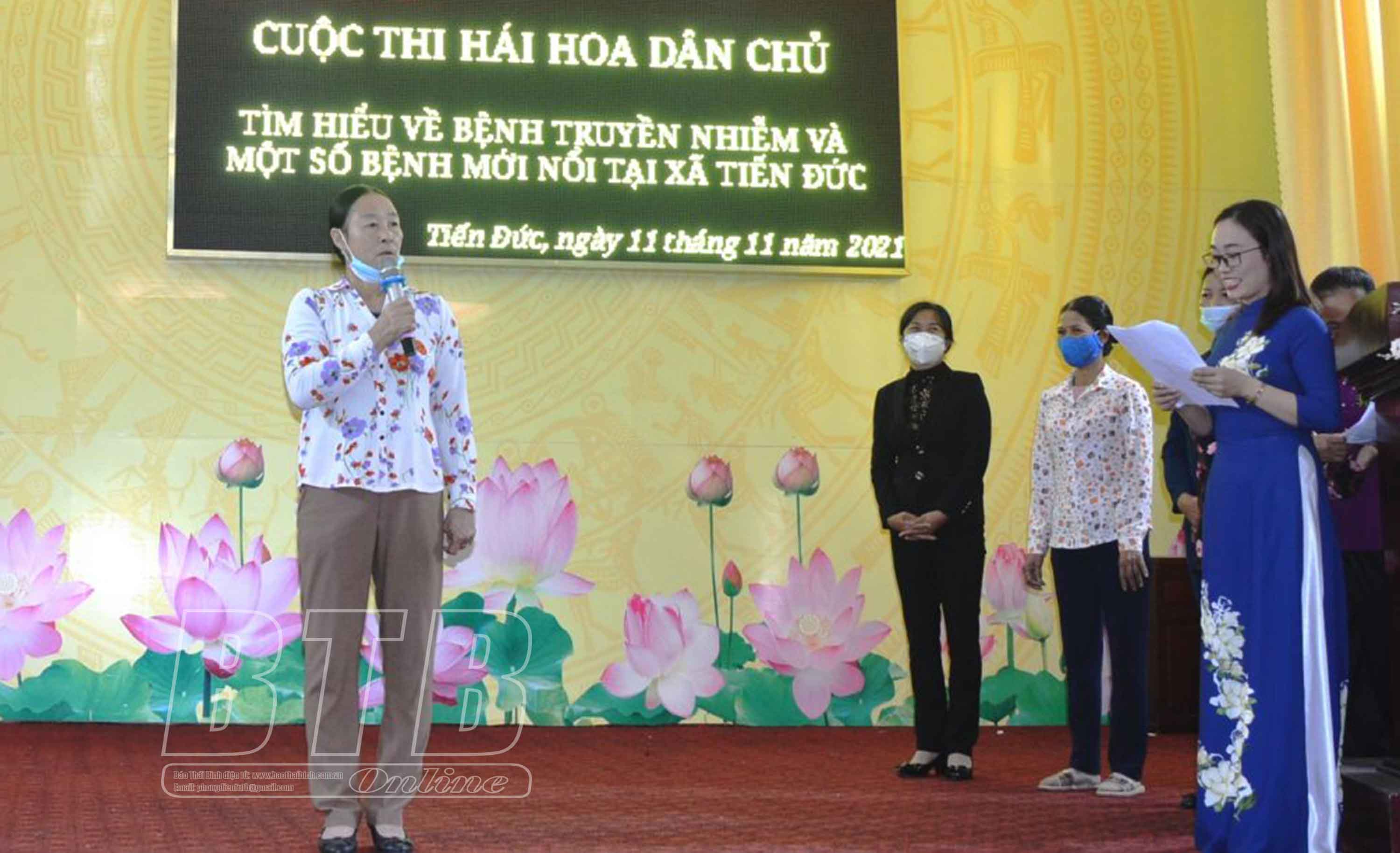 Ngày 11/11, Hội Liên hiệp Phụ nữ (LHPN) huyện Hưng Hà phối hợp với Trung tâm Kiểm soát bệnh tật tỉnh, Trung tâm Y tế huyện tổ chức cuộc thi “Hái hoa dân chủ” tìm hiểu về một số bệnh truyền nhiễm và bệnh mới.