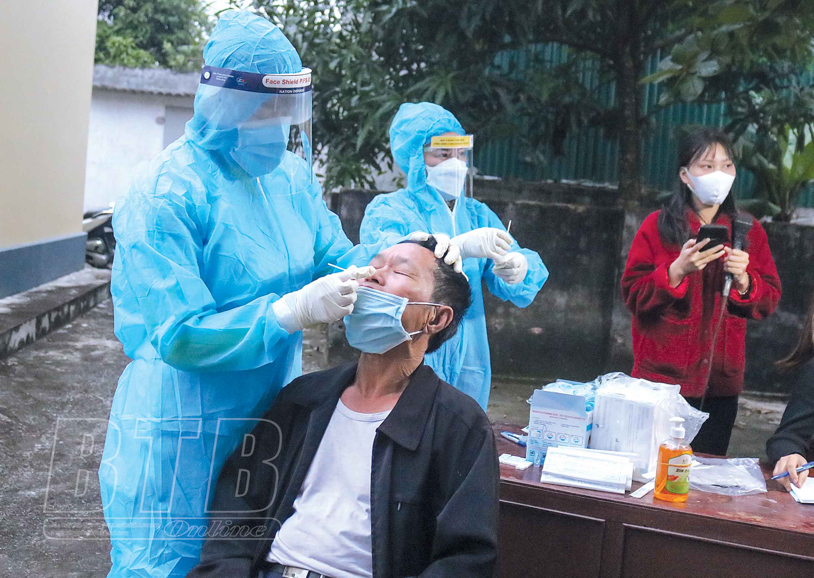 Lực lượng y tế test nhanh Covid-19 cho người dân thôn Nam Long, xã Tự Tân (Vũ Thư).
