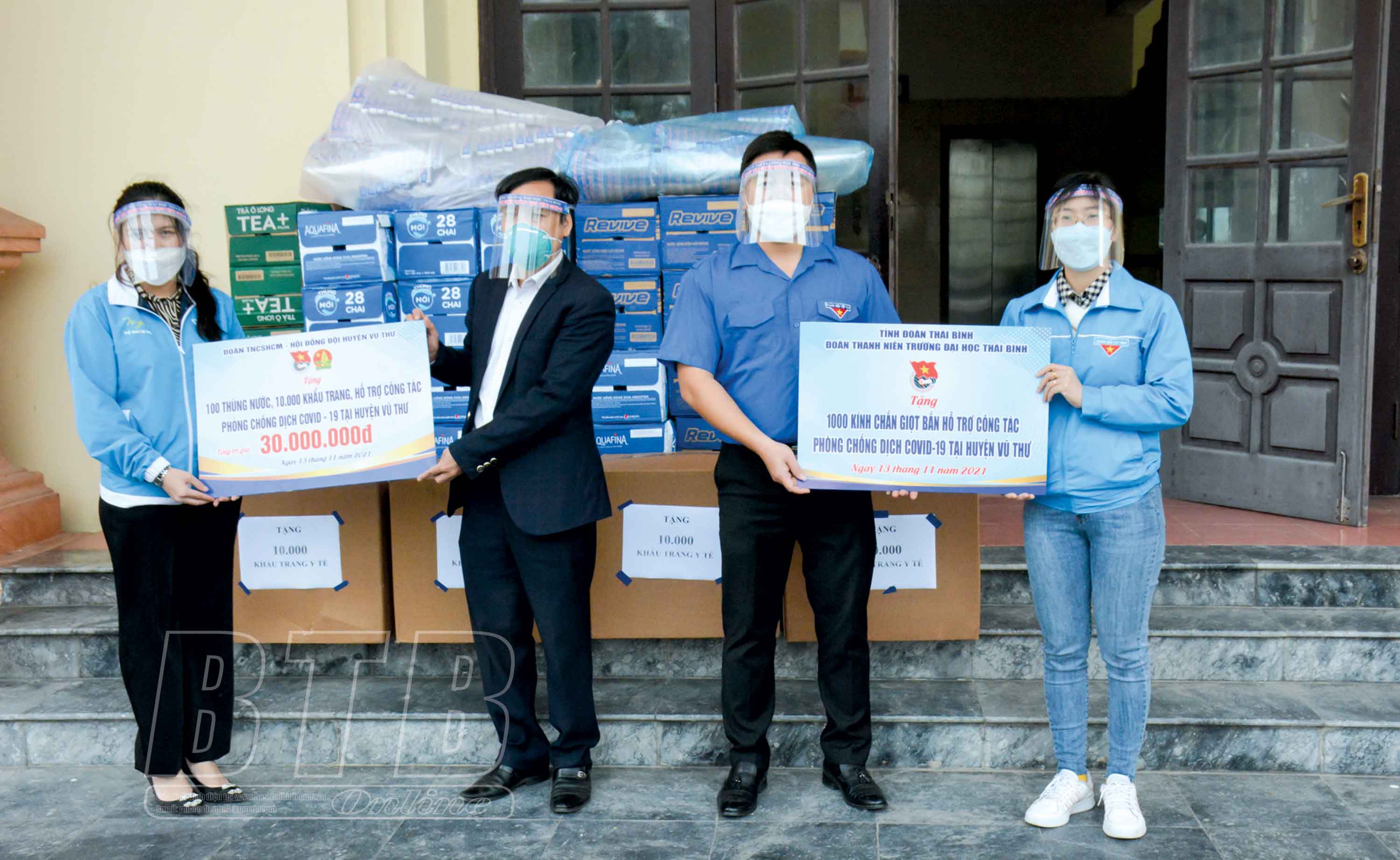 Tỉnh đoàn, Hội đồng Đội tỉnh và Đoàn Thanh niên Trường Đại học Thái Bình tặng nhu yếu phẩm, thiết bị phòng, chống dịch cho huyện Vũ Thư.