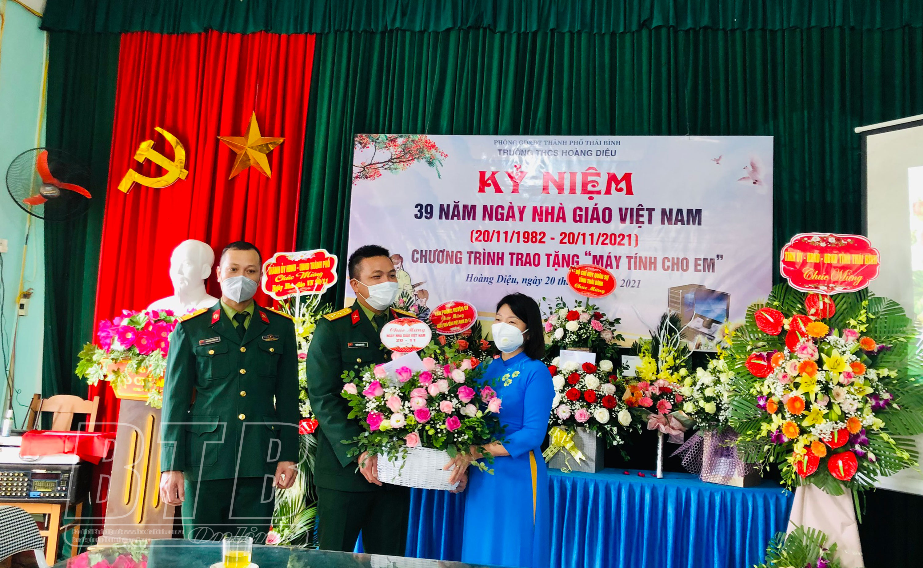 Các đơn vị quân đội tặng hoa chúc mừng THCS Hoàng Diệu (thành phố Thái Bình) nhân Ngày Nhà giáo Việt Nam 20/11.