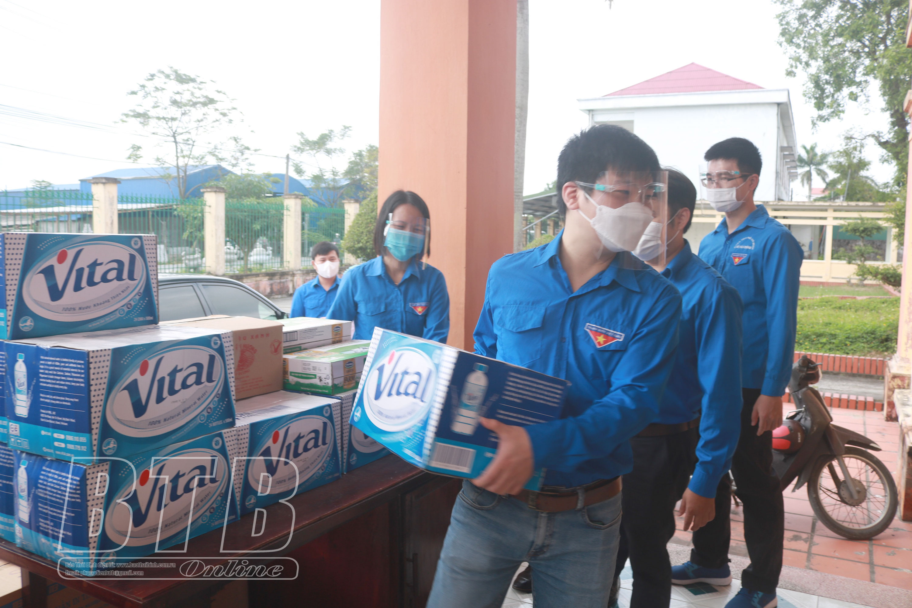 Đoàn viên thanh niên hỗ trợ vận chuyển nhu yếu phẩm tại Bệnh viện Phổi Thái Bình.