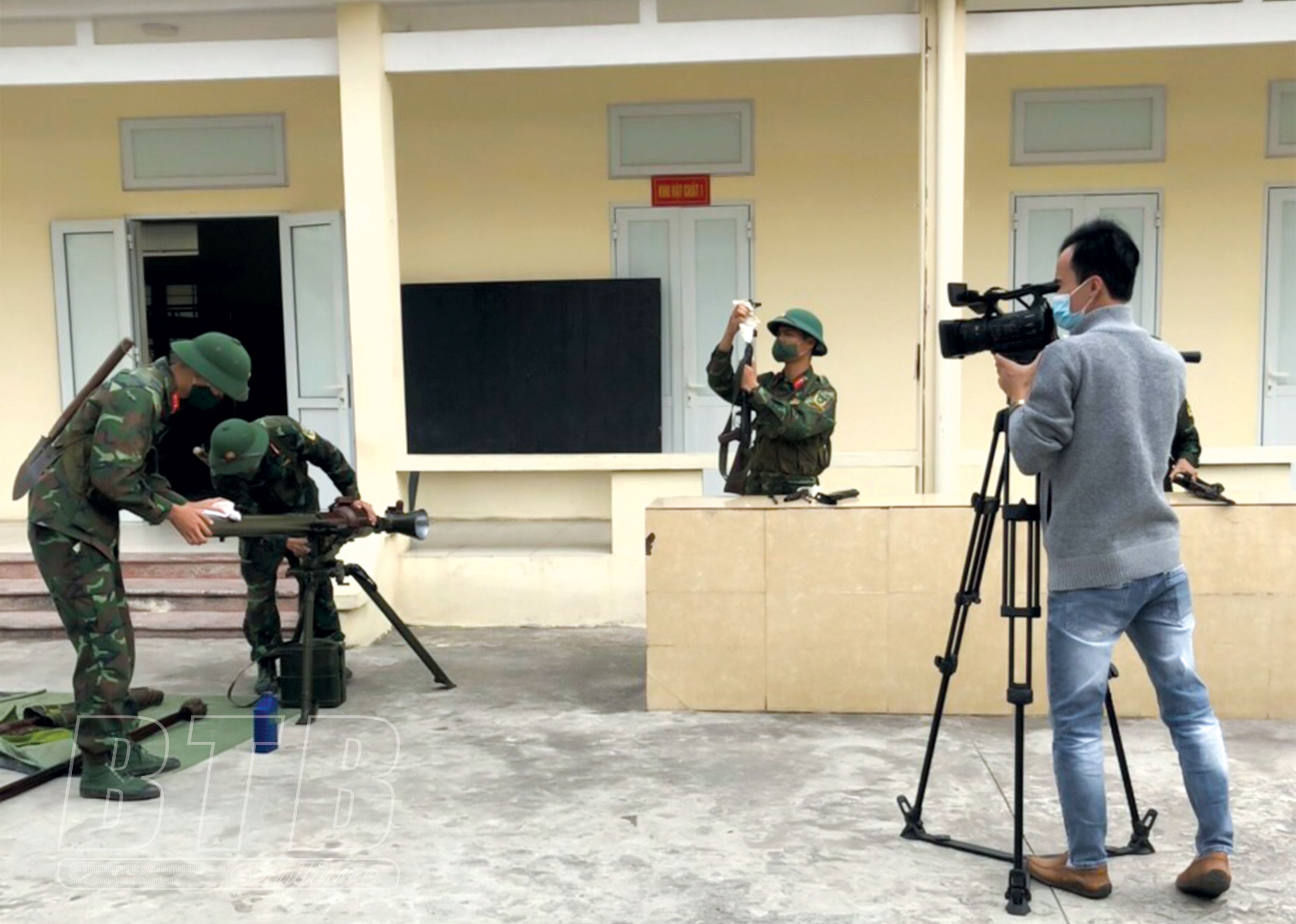 Cộng tác viên Trí Tuệ, Đài TTTH Tiền Hải tác nghiệp tại Trung đoàn 8, Sư đoàn 395.