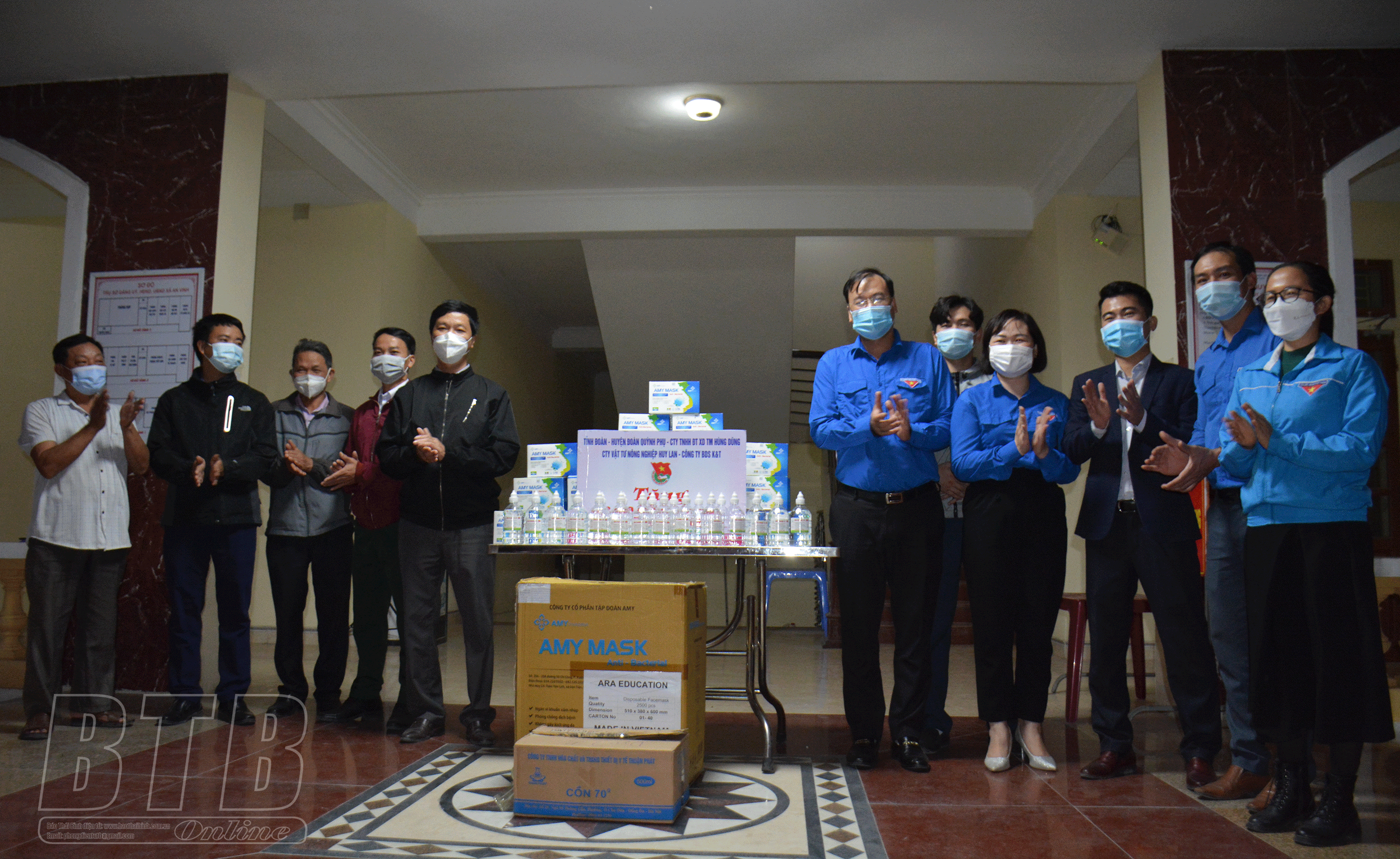 Tỉnh đoàn, Huyện đoàn Quỳnh Phụ và các doanh nghiệp trao tặng vật tư y tế cho Ban Chỉ đạo phòng, chống dịch Covid-19 xã An Vinh.