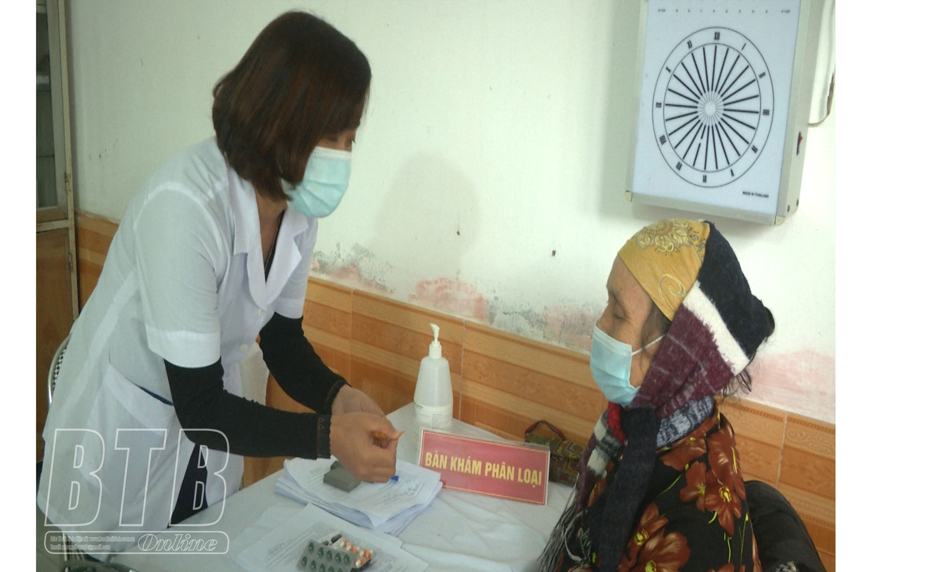 Bác sĩ Trần Thị Hòa, Trạm trưởng Trạm Y tế xã Đông Hoàng chăm sóc bệnh nhân.