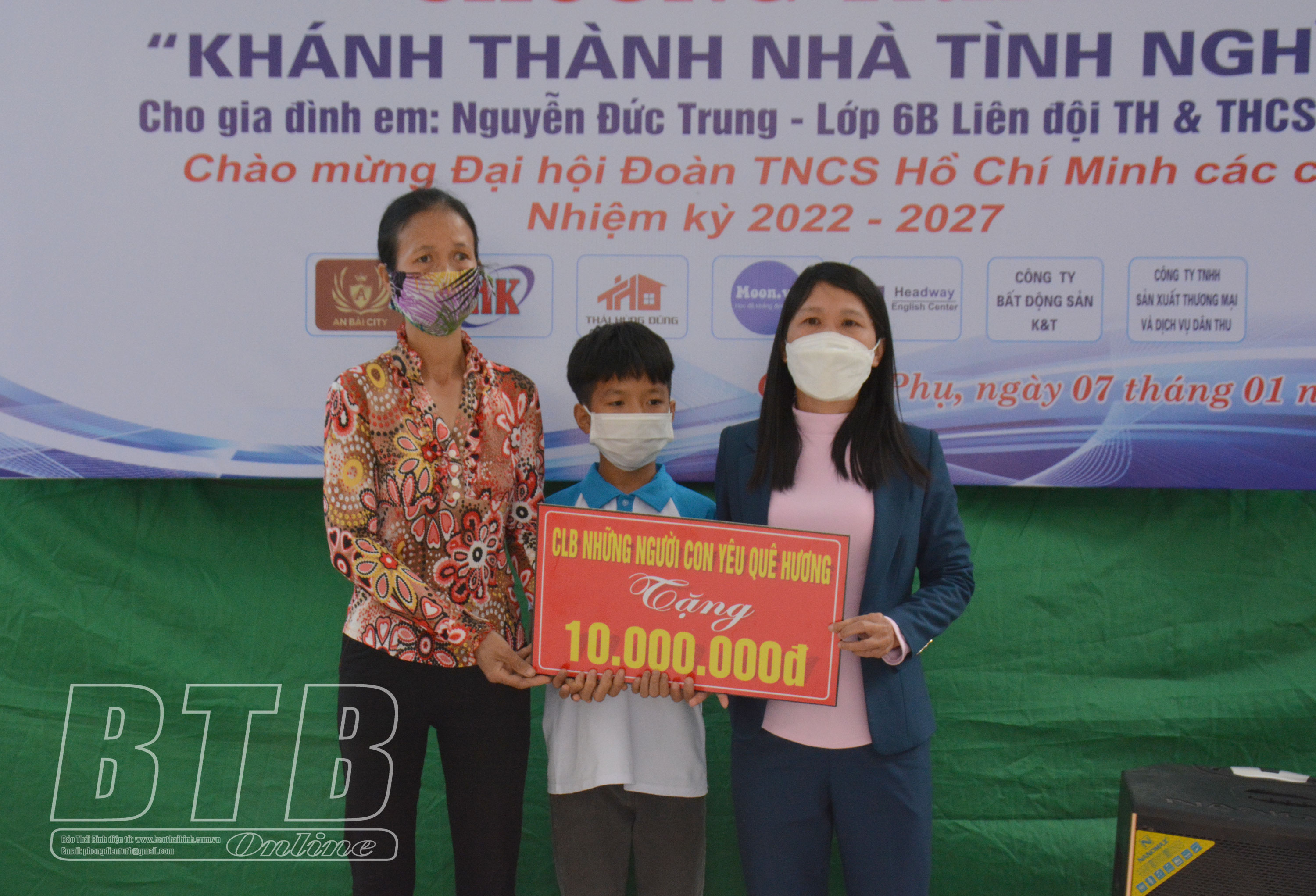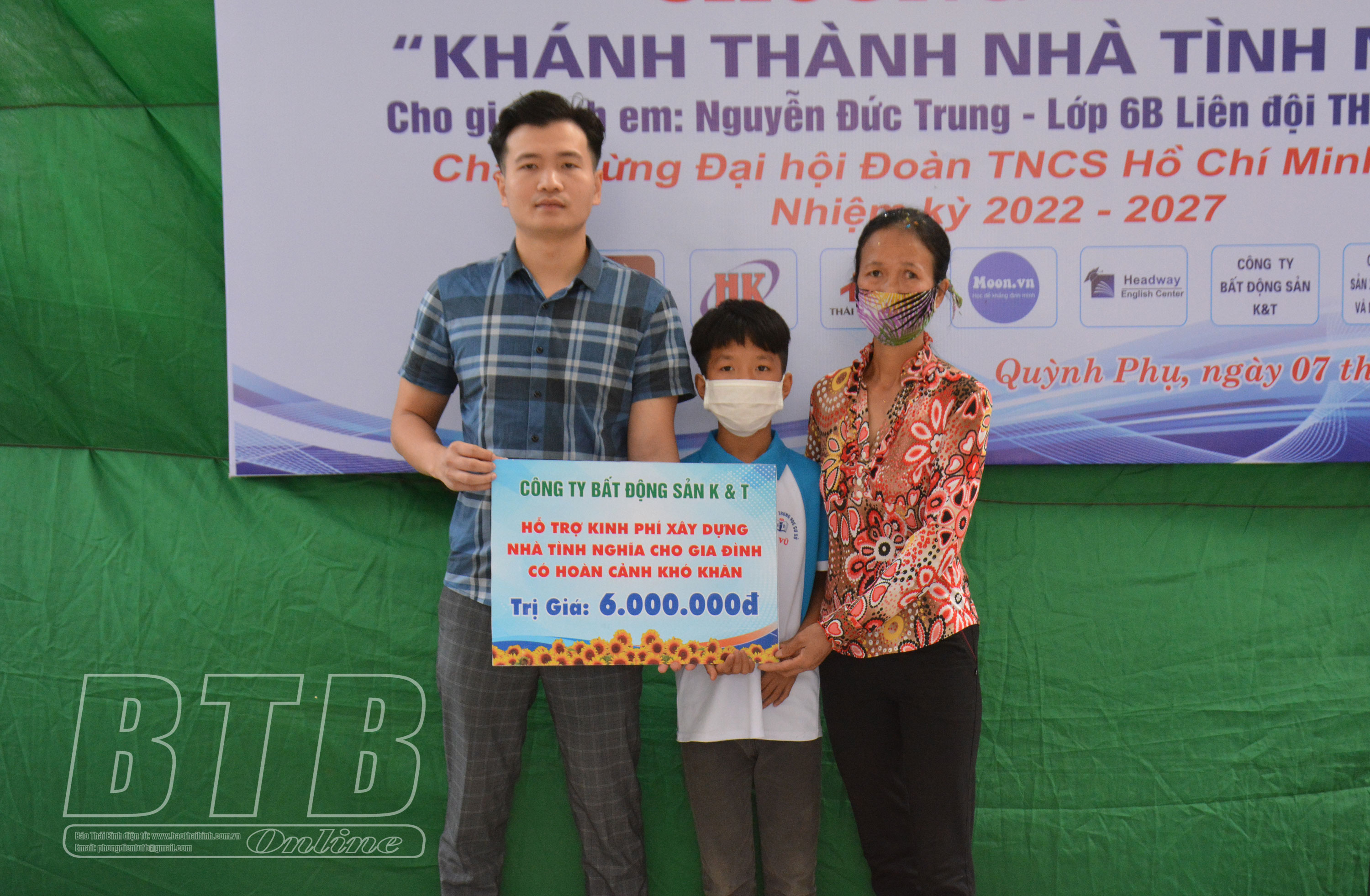 Tại buổi lễ khánh thành nhà tình nghĩa, đại diện các cấp bộ đoàn, chính quyền, các ban, ngành, đoàn thể đã trao tặng cho gia đình em Trung các vật dụng cần thiết trong cuộc sống.