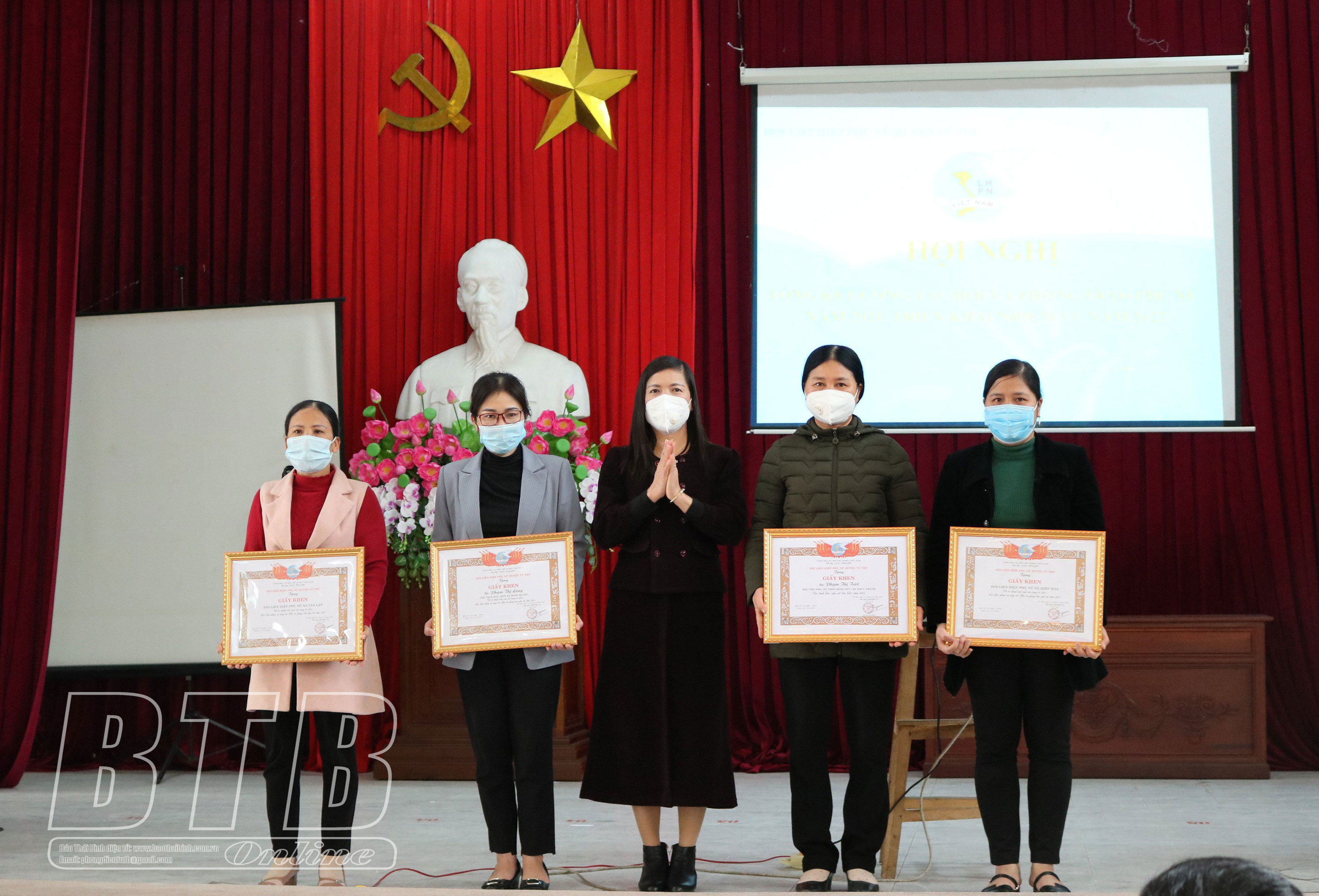 Lãnh đạo Tỉnh hội Phụ nữ trao bằng khen của Hội LHPN tỉnh cho các tập thể, cá nhân có thành tích xuất sắc trong các phogn trào thi đua của hội năm 2021.