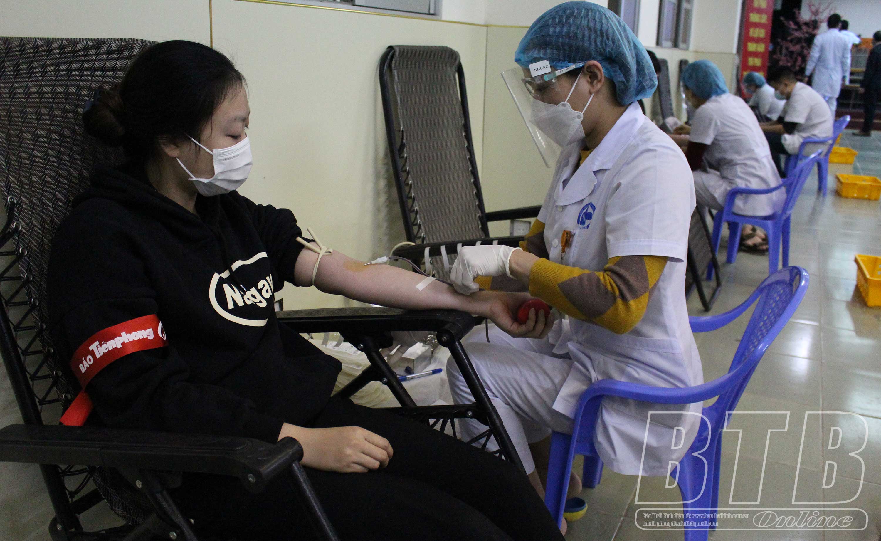 Sinh viên Trường Đại học Thái Bình tham gia hiến máu tình nguyện.