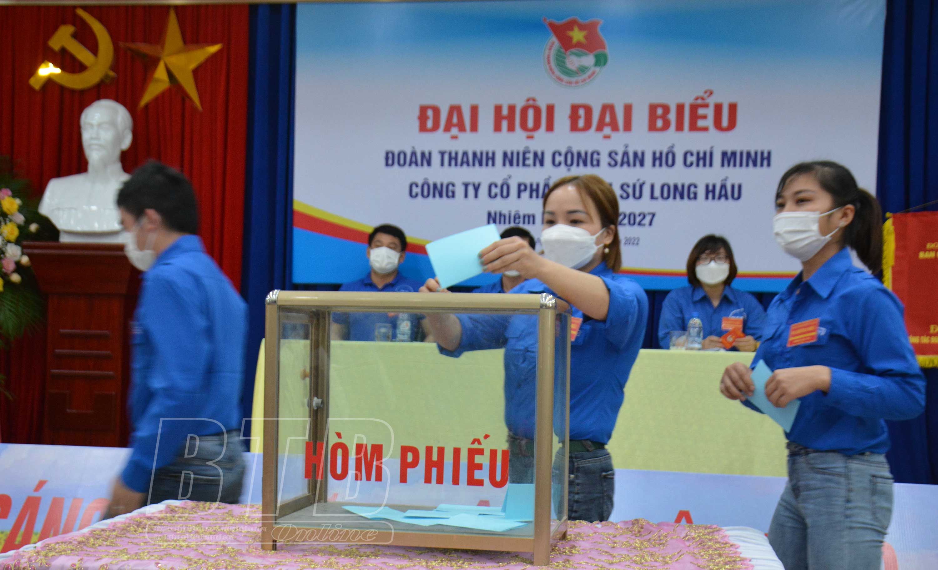 Các đại biểu bỏ phiếu bầu trực tiếp Bí thư Đoàn Thanh niên Công ty Cổ phần Gốm sứ Long Hầu, nhiệm kỳ 2022-2027.
