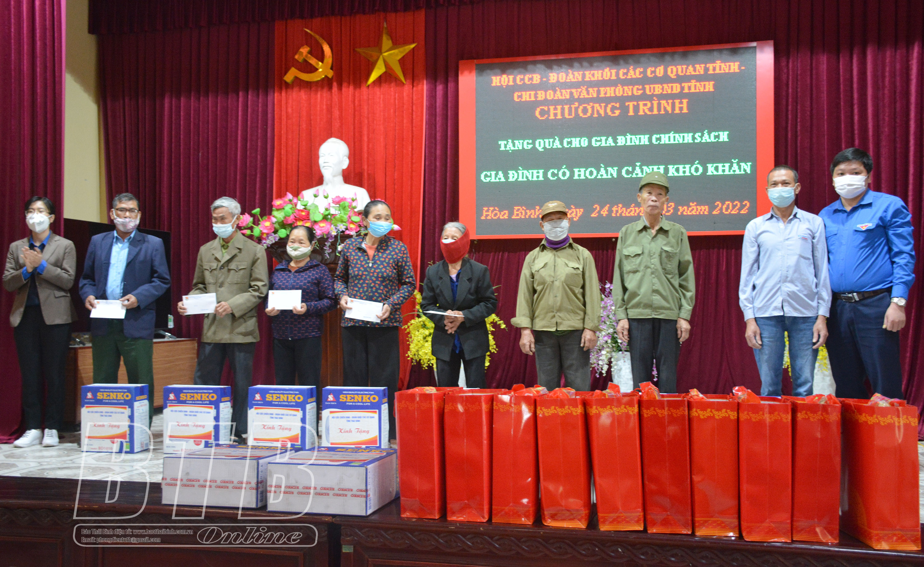 40 suất quà với tổng trị giá 22 triệu đồng đã được trao cho các gia đình thương binh, liệt sĩ, cựu thanh niên xung phong, cựu chiến binh, người nhiễm chất độc hóa học có hoàn cảnh khó khăn. Số quà tặng được huy động từ các cơ sở đoàn trực thuộc Đoàn Thanh niên Khối các cơ quan tỉnh. Tuy giá trị không lớn nhưng thể hiện sự tri ân của thế hệ trẻ trước những hy sinh, đóng góp to lớn của các thương binh, bệnh binh, các anh hùng liệt sĩ vì sự nghiệp giải phóng dân tộc, thống nhất đất nước.
