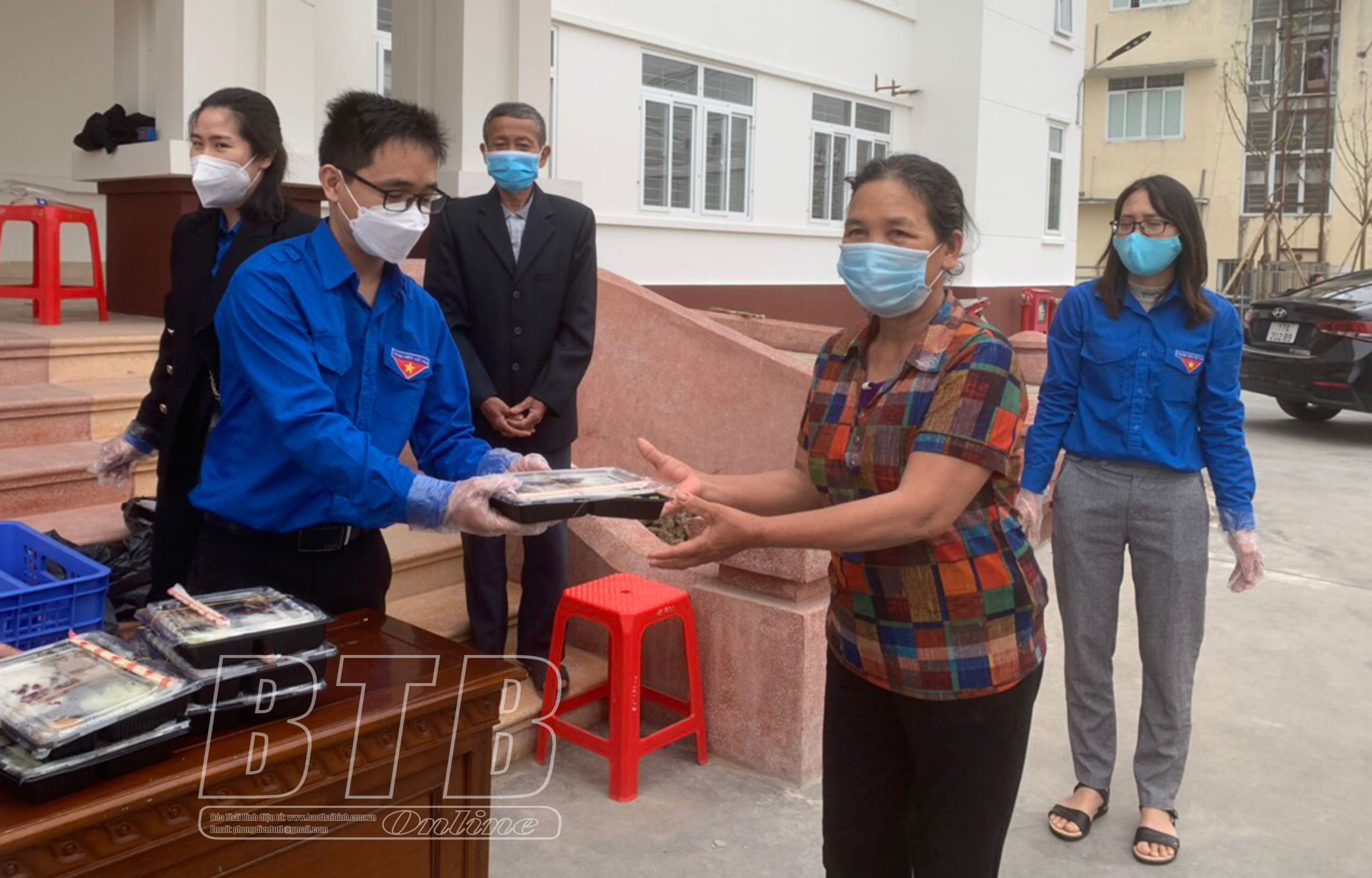 Cũng trong sáng ngày 25/3, đoàn viên thanh niên 2 chi đoàn đã tổ chức phát 140 suất cơm cho các bệnh nhân đang điều trị tại Bệnh viện Đa khoa huyện Vũ Thư.