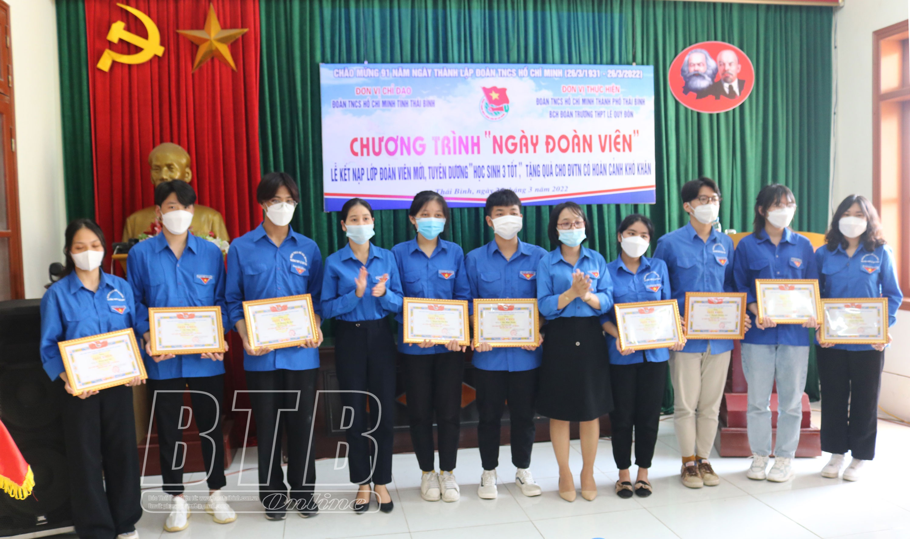 Tại ngày hội, các bạn đoàn viên đã dâng hương tưởng niệm các anh hùng, liệt sĩ tại Đền thời Liệt sĩ tỉnh; ôn lại truyền thống 91 năm ngày thành lập Đoàn TNCS Hồ Chí Minh (26/3/1931 - 26/3/2022); kết nạp 12 thanh niên ưu tú của Trường THPT Lê Quý Đôn vào Đoàn TNCS Hồ Chí Minh và trao giấy khen tuyên dương “Học sinh 3 tốt” cho 10 em có nhiều thành tích xuất sắc trong học tập và các phong trào của đoàn.