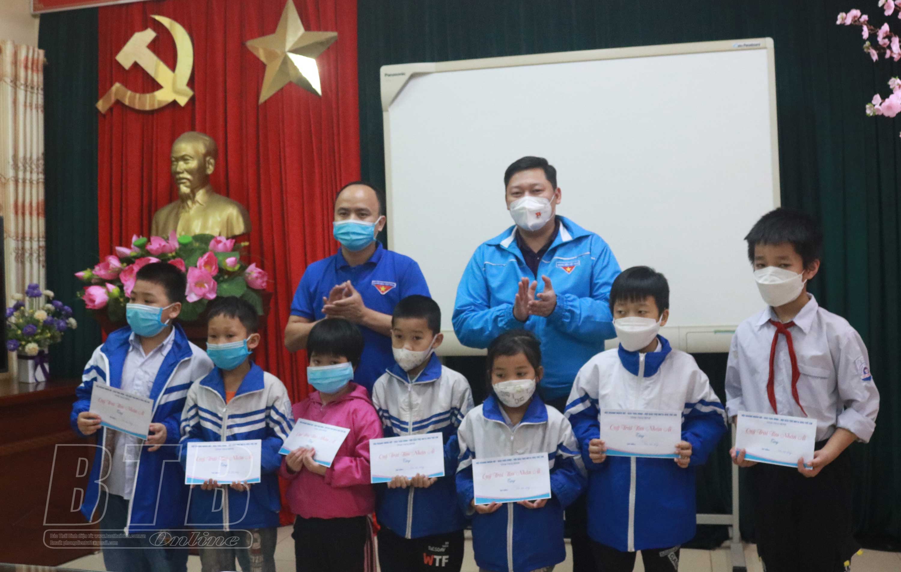 Tại chương trình, đại diện 2 đơn vị đã trao 20 suất quà, mỗi suất quà trị giá 500.000 đồng cho các em học sinh mồ côi, khuyết tật tại 2 trường: Tiểu học Hoàng Diệu và Tiểu học Vũ Phúc (thành phố Thái Bình). Số tiền này trích từ quỹ “Trái tim nhân ái” do Báo Thái Bình, Hội Bảo trợ người khuyết tật và trẻ mồ côi, Hội Doanh nhân nữ tỉnh phát động.