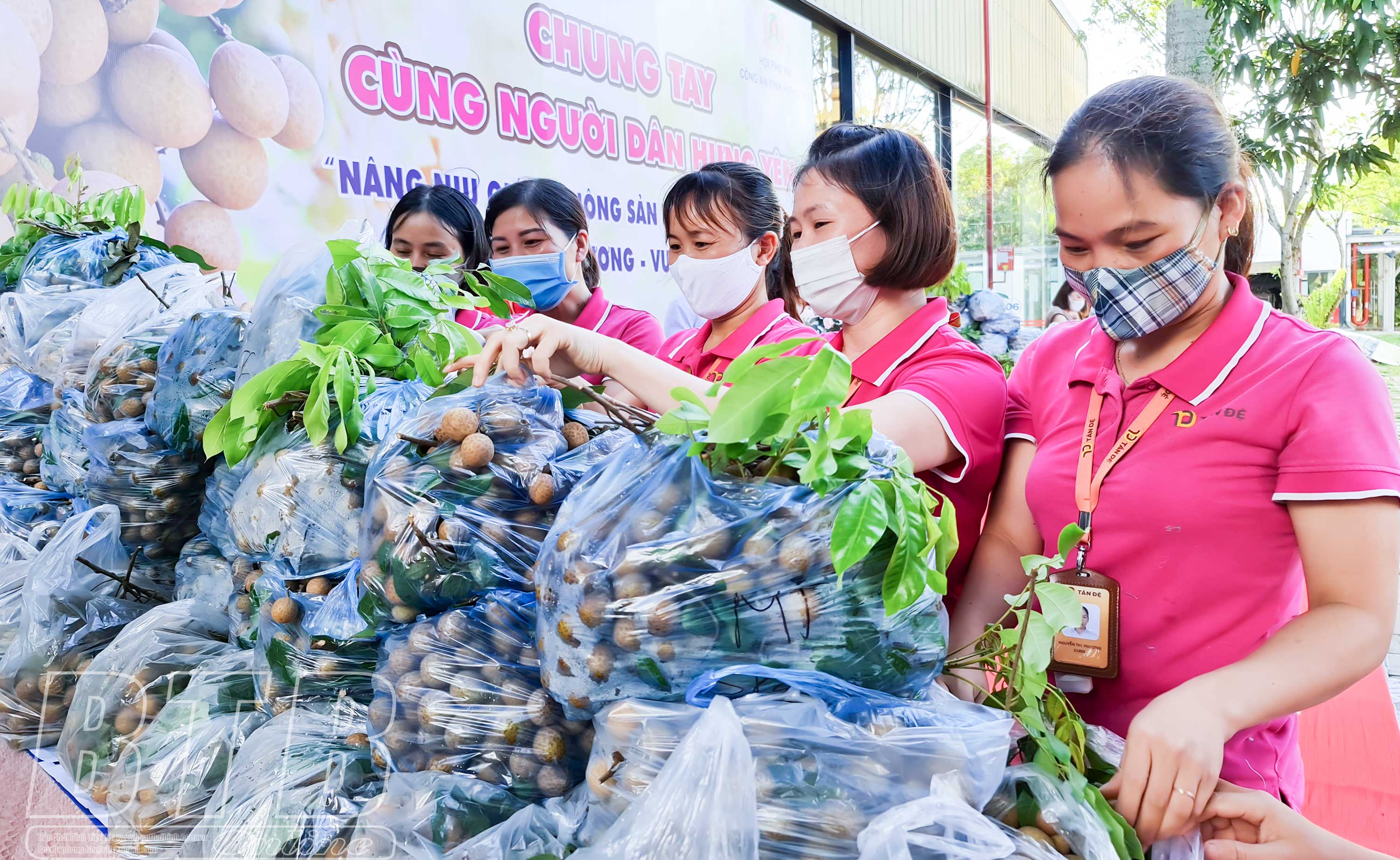 Đoàn viên, thanh niên Công ty Tân Đệ ủng hộ nông dân tỉnh Hưng Yên tiêu thụ nông sản. Ảnh tư liệu
