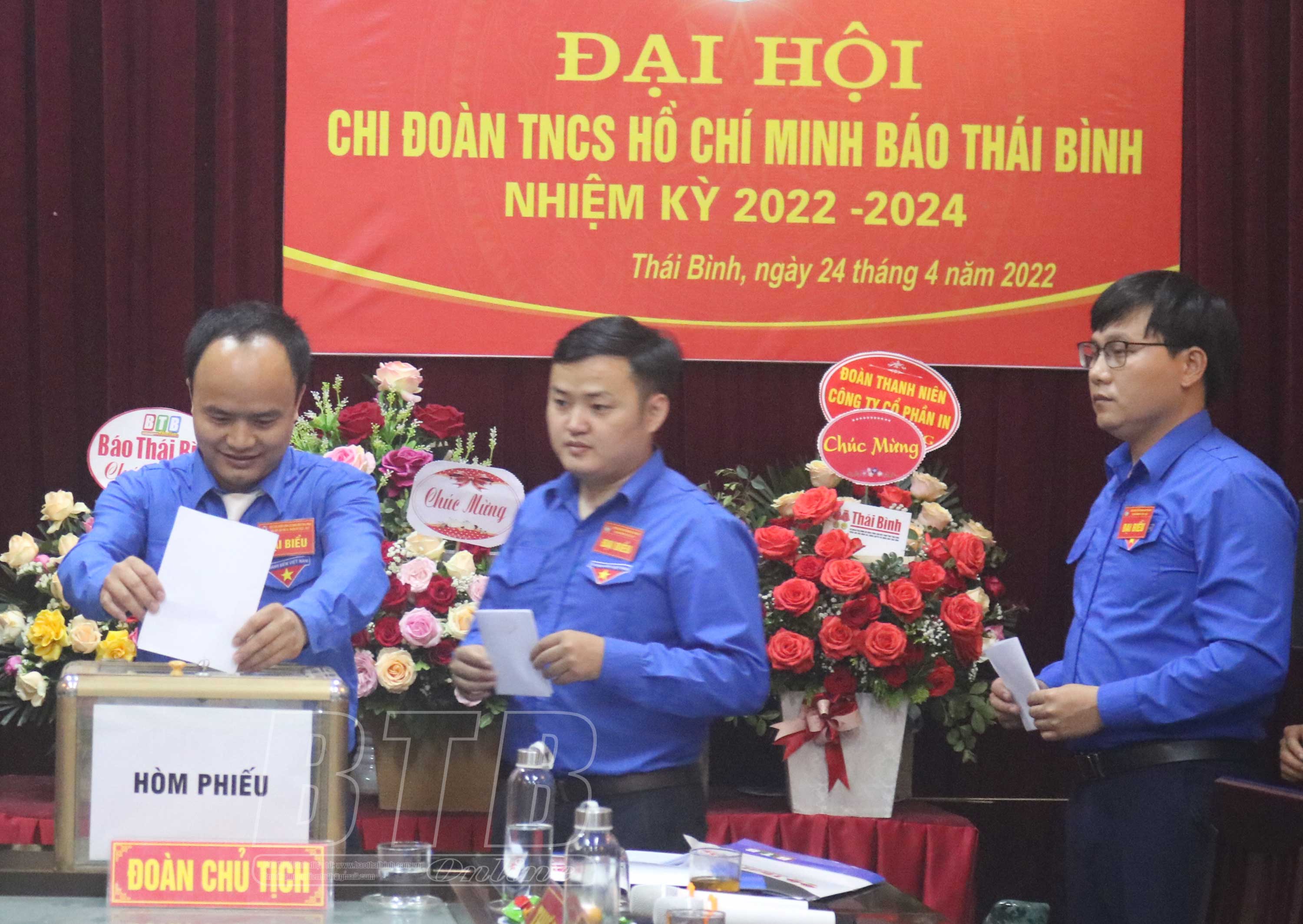 Đại biểu bỏ phiếu bầu Ban Chấp hành Chi đoàn Thanh niên Báo Thái Bình nhiệm kỳ 2022-2024.