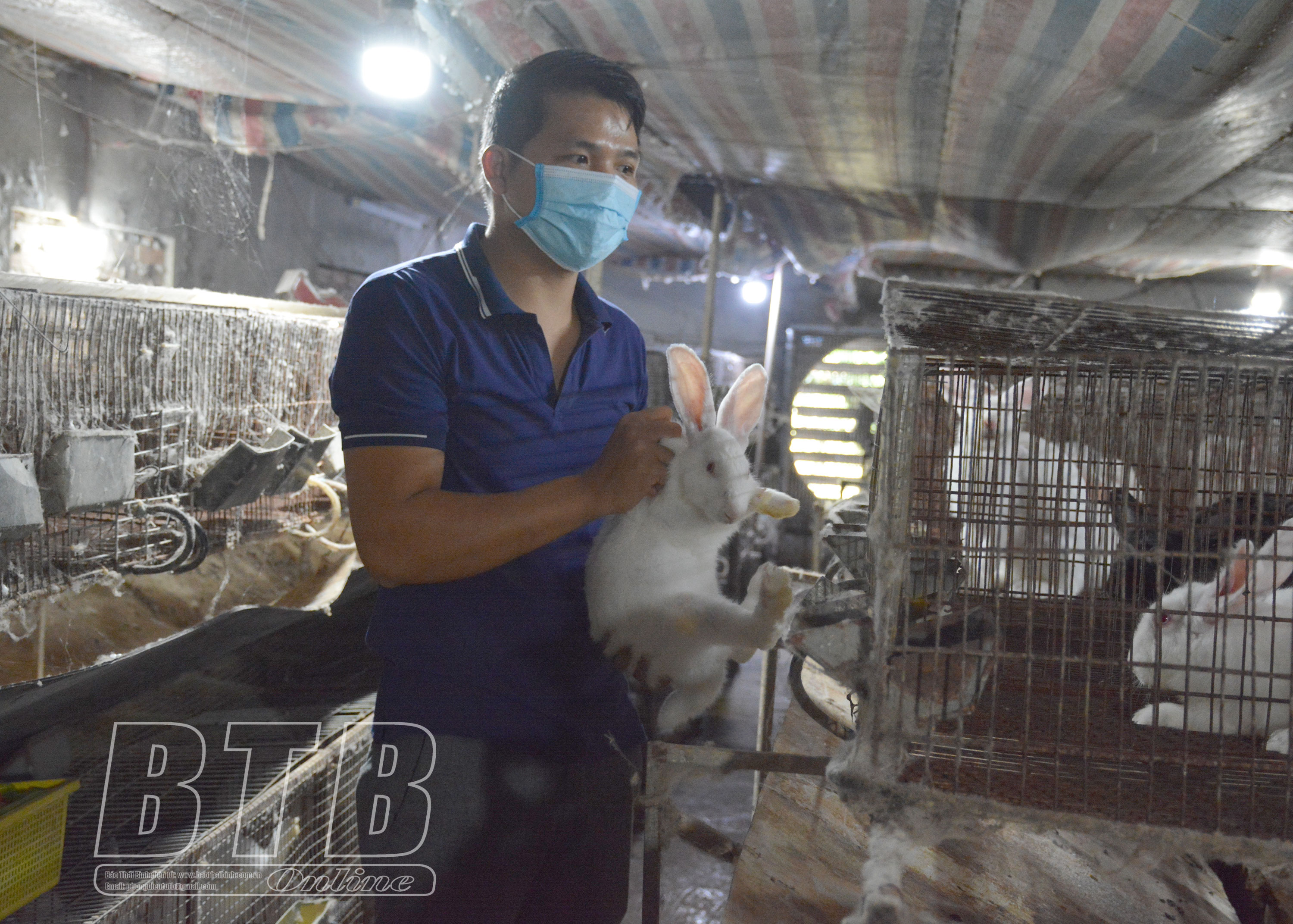 Mô hình nuôi thỏ của anh Vũ Thanh Long, xã Dương Hồng Thủy (Thái Thụy).