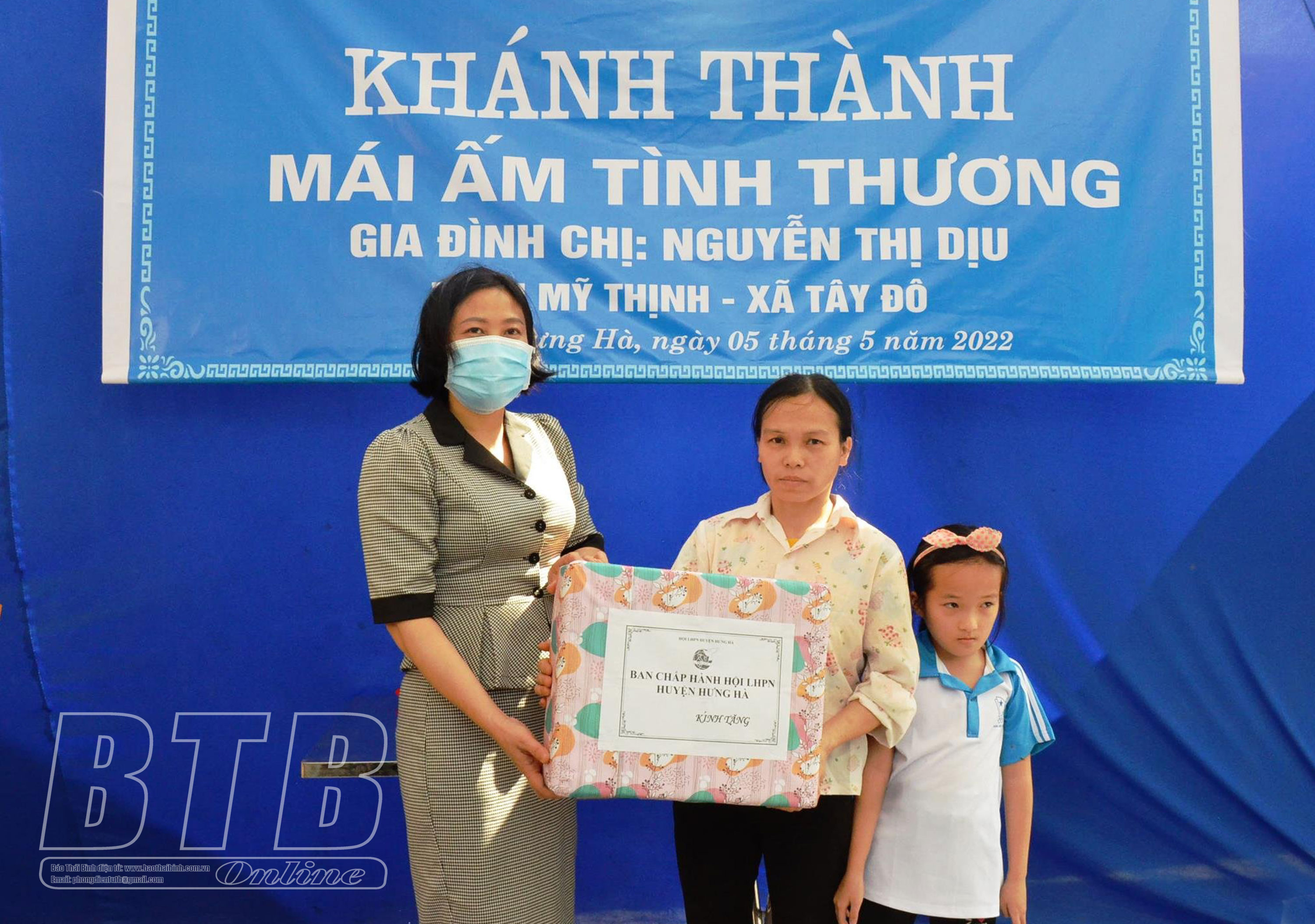 Lãnh đạo Hội LHPN huyện Hưng Hà trao quà cho chị Nguyễn Thị Dịu.