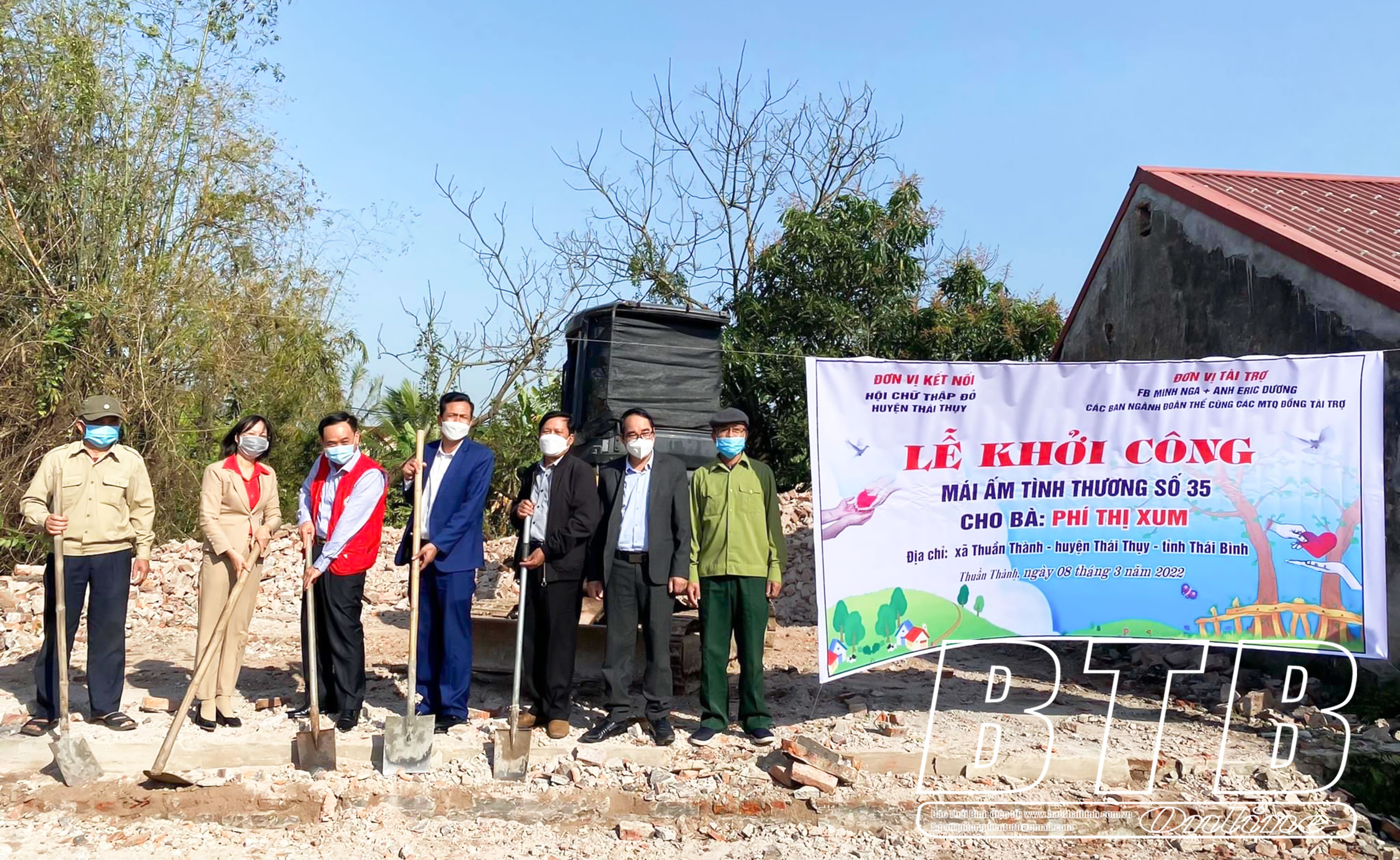 Hội Chữ thập đỏ huyện Thái Thụy cùng các tổ chức, nhà hảo tâm tổ chức lễ khởi công xây nhà tình thương cho hộ nghèo.