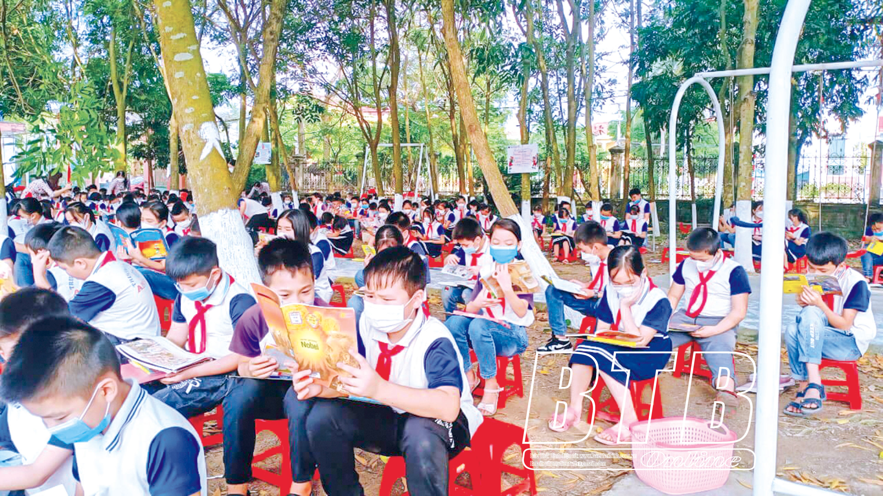 Đội viên Liên đội Trường Tiểu học An Bài (Quỳnh Phụ) tham gia ngày hội sách năm 2022.