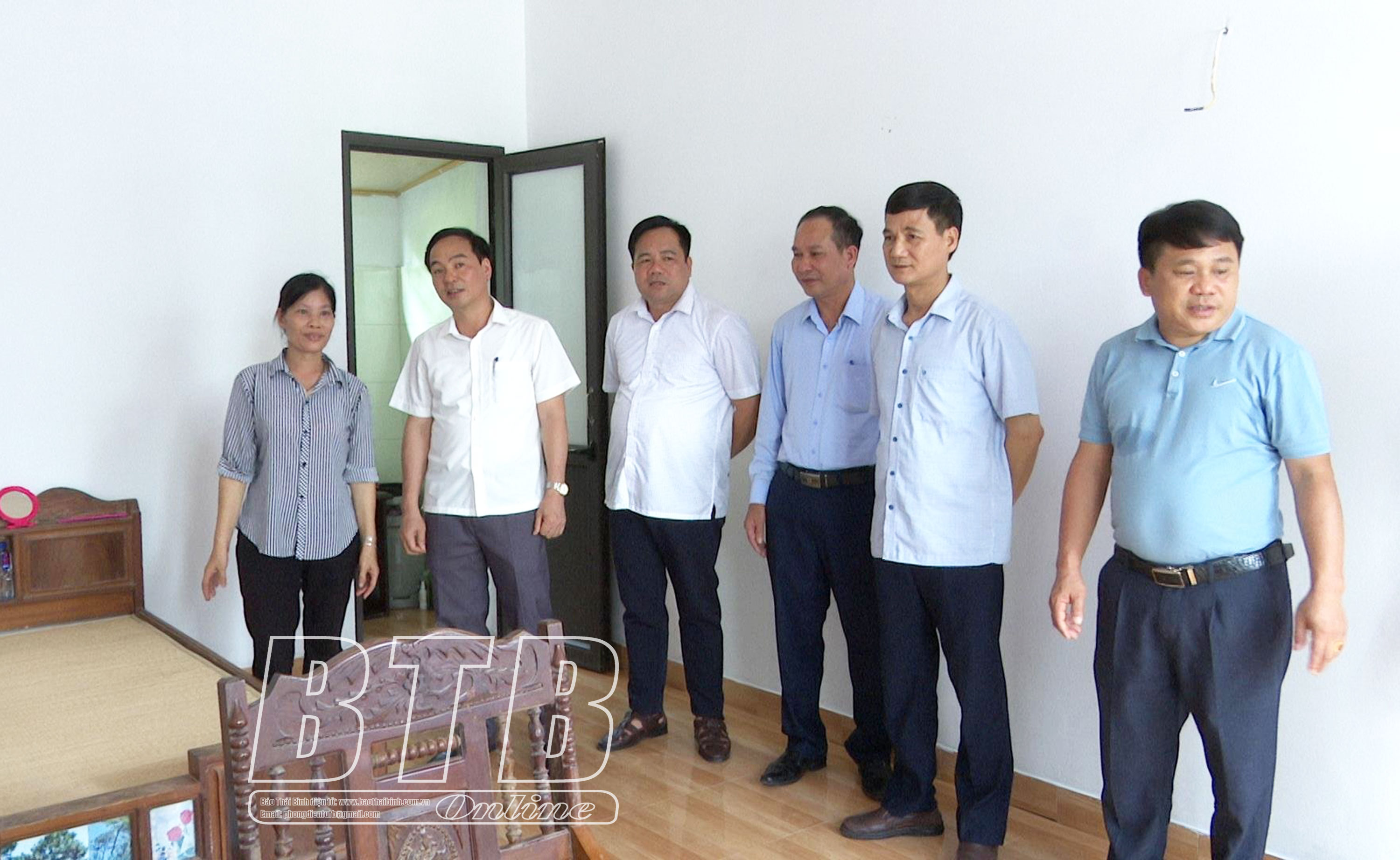 Lãnh đạo huyện Kiến Xương thăm ngôi nhà mới của bà Trương Thị Hựu.