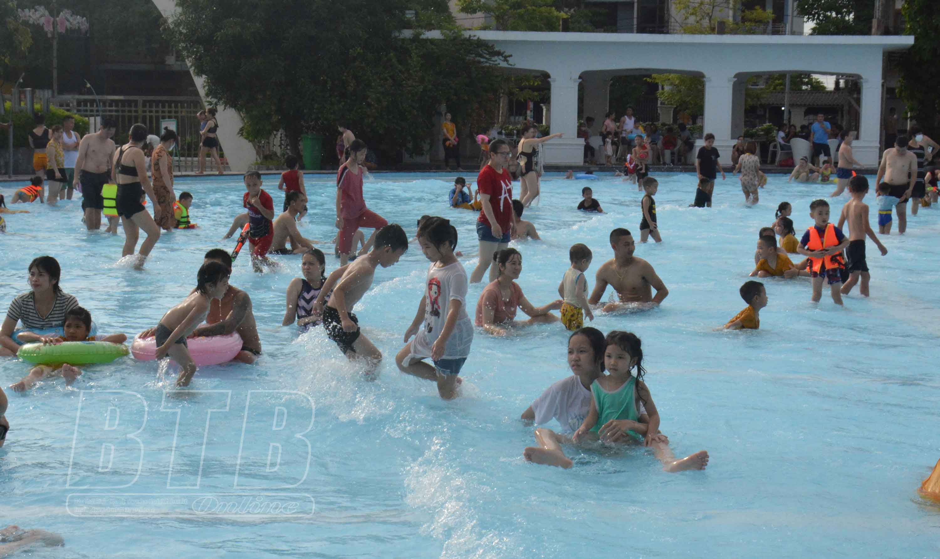 Các em nhỏ và phụ huynh vui chơi tại Công viên nước Thái Bình.