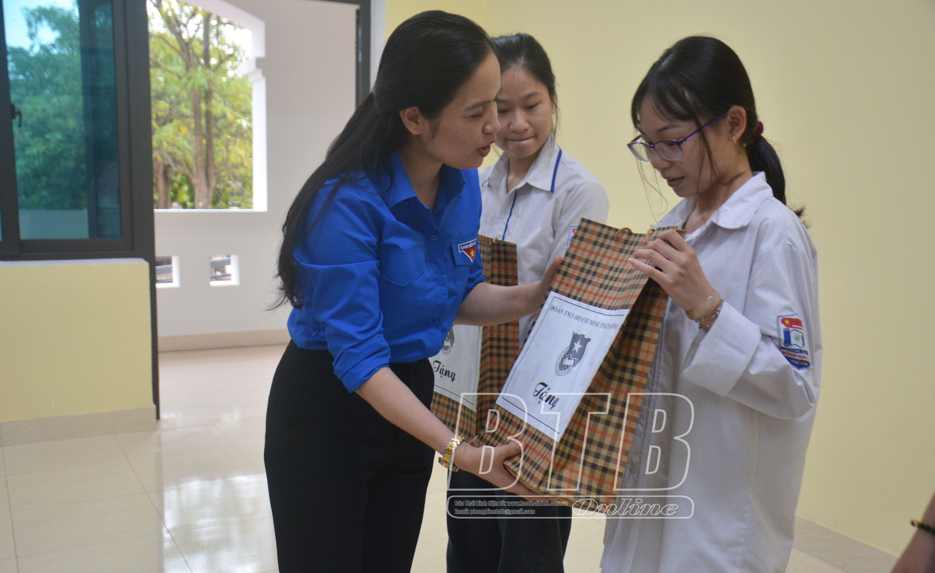 Lãnh đạo Tỉnh đoàn đã thăm hỏi, động viên, chúc các em học sinh tiếp tục vượt qua khó khăn để hoàn thành tốt kỳ thi tốt nghiệp THPT, đồng thời trao tặng các suất quà và tiền mặt (tổng giá trị 700.000 đồng/suất) để chia sẻ khó khăn với các em trong những ngày thi quan trọng sắp tới.