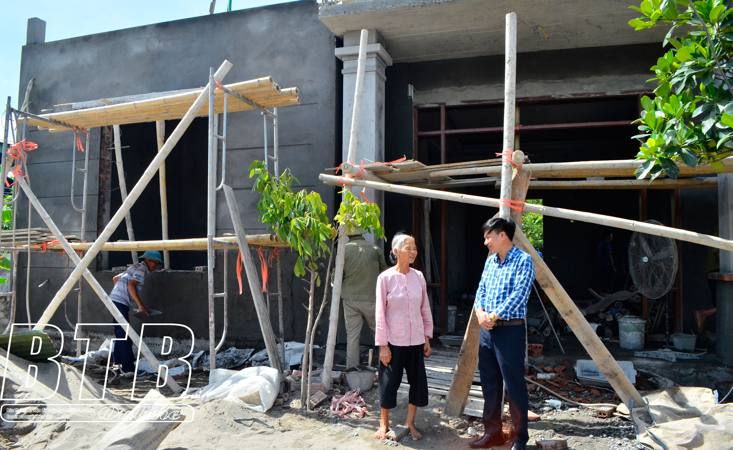Niềm vui của bà Nguyễn Thị Vạnh, thôn Kìm, xã Vũ Lạc khi ngôi nhà sắp hoàn thành.