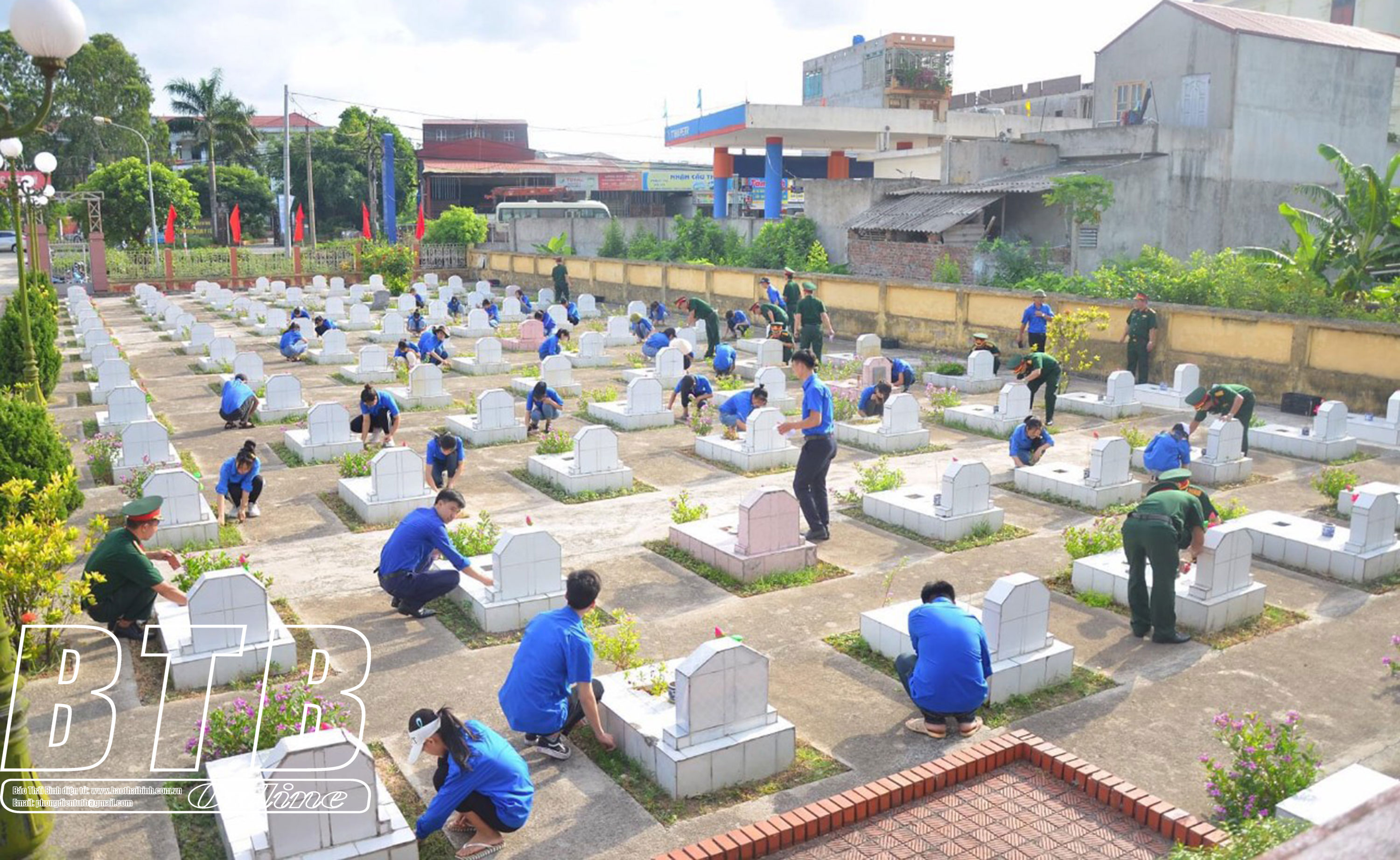 Đoàn viên thanh niên huyện Hưng Hà tham gia vệ sinh khuôn viên nghĩa trang để tri ân các anh hùng liệt sĩ.