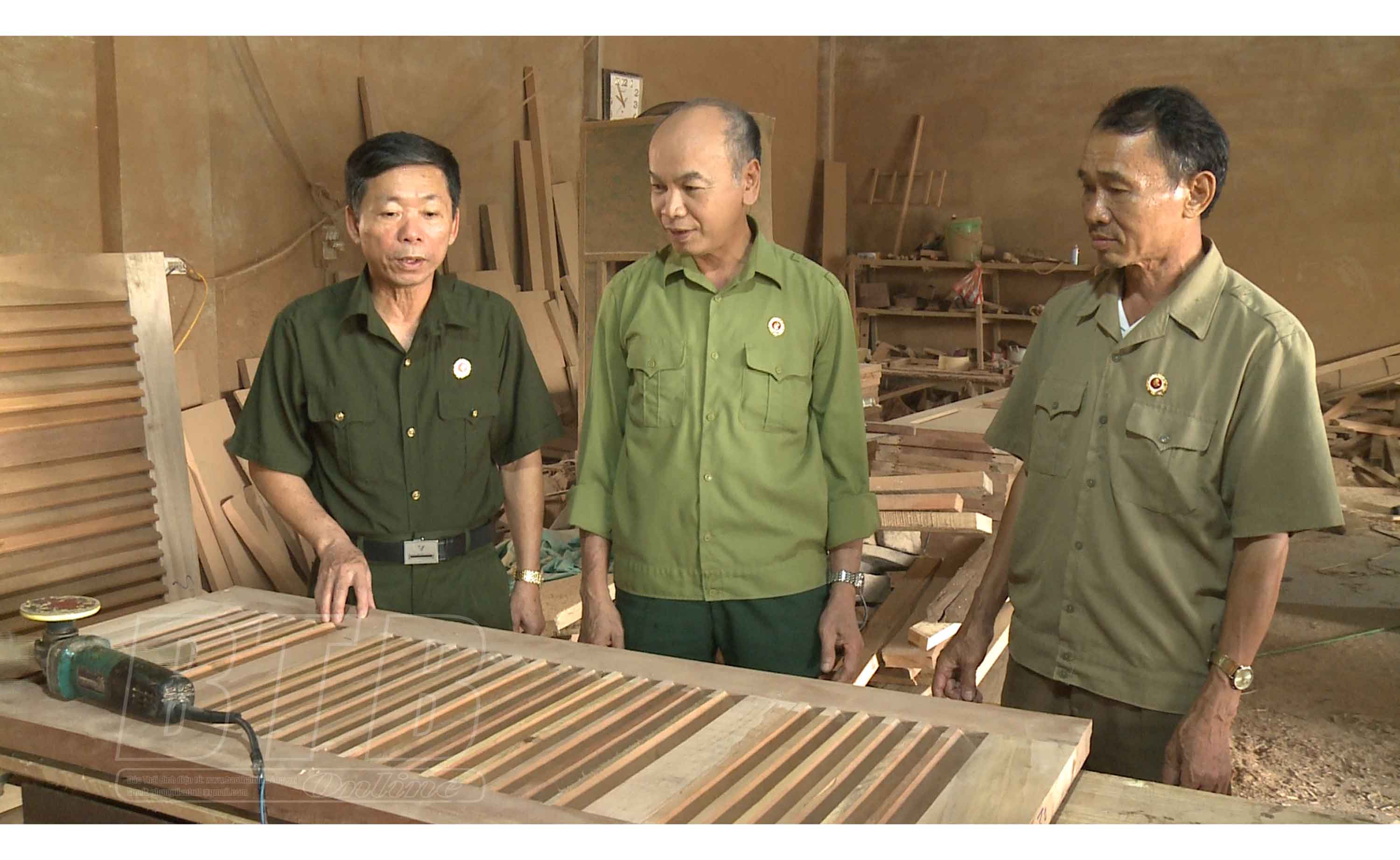 Cơ sở sản xuất đồ gỗ của CCB Đỗ Cao Tuyển (ngoài cùng bên trái) tạo việc làm cho nhiều lao động.