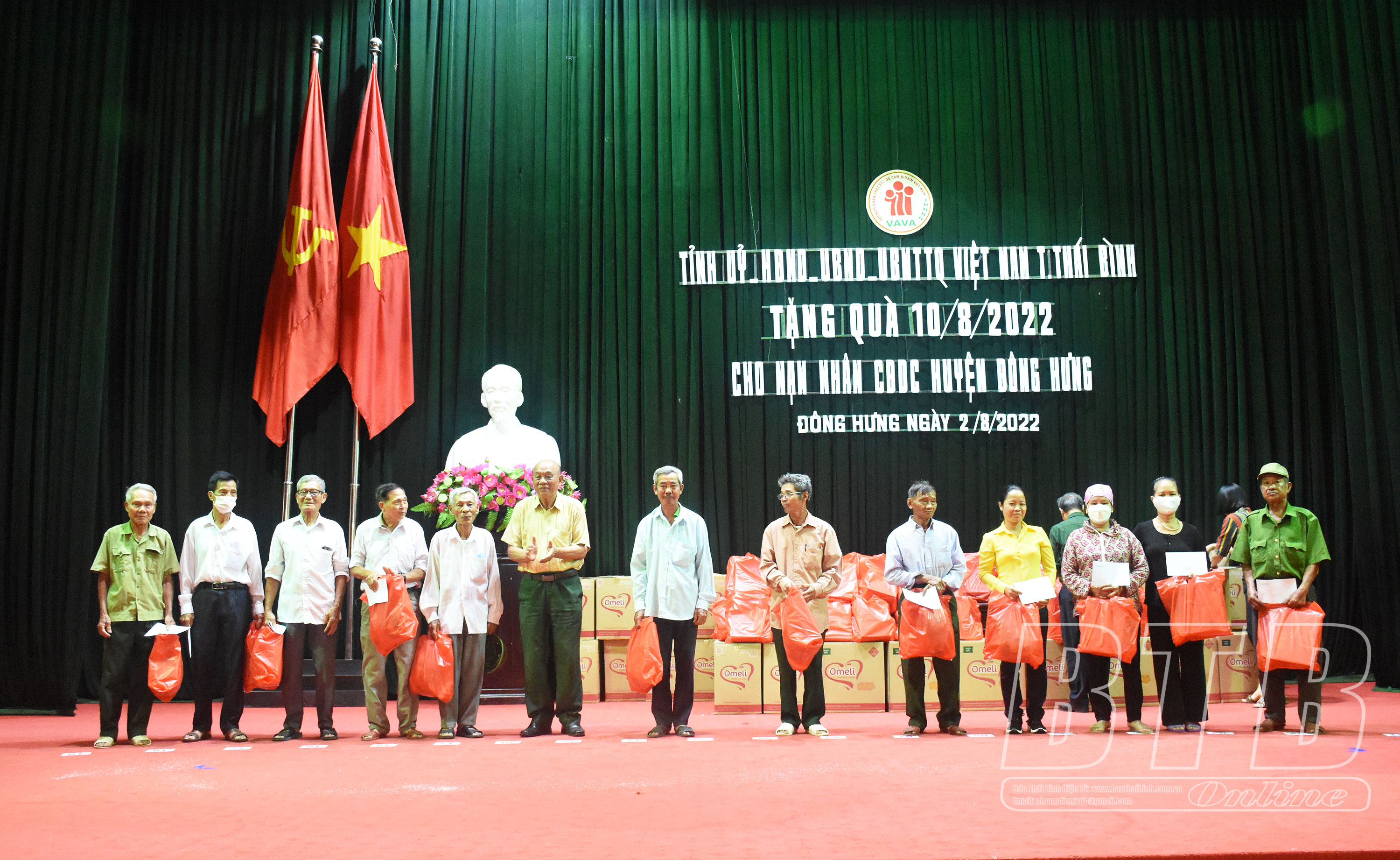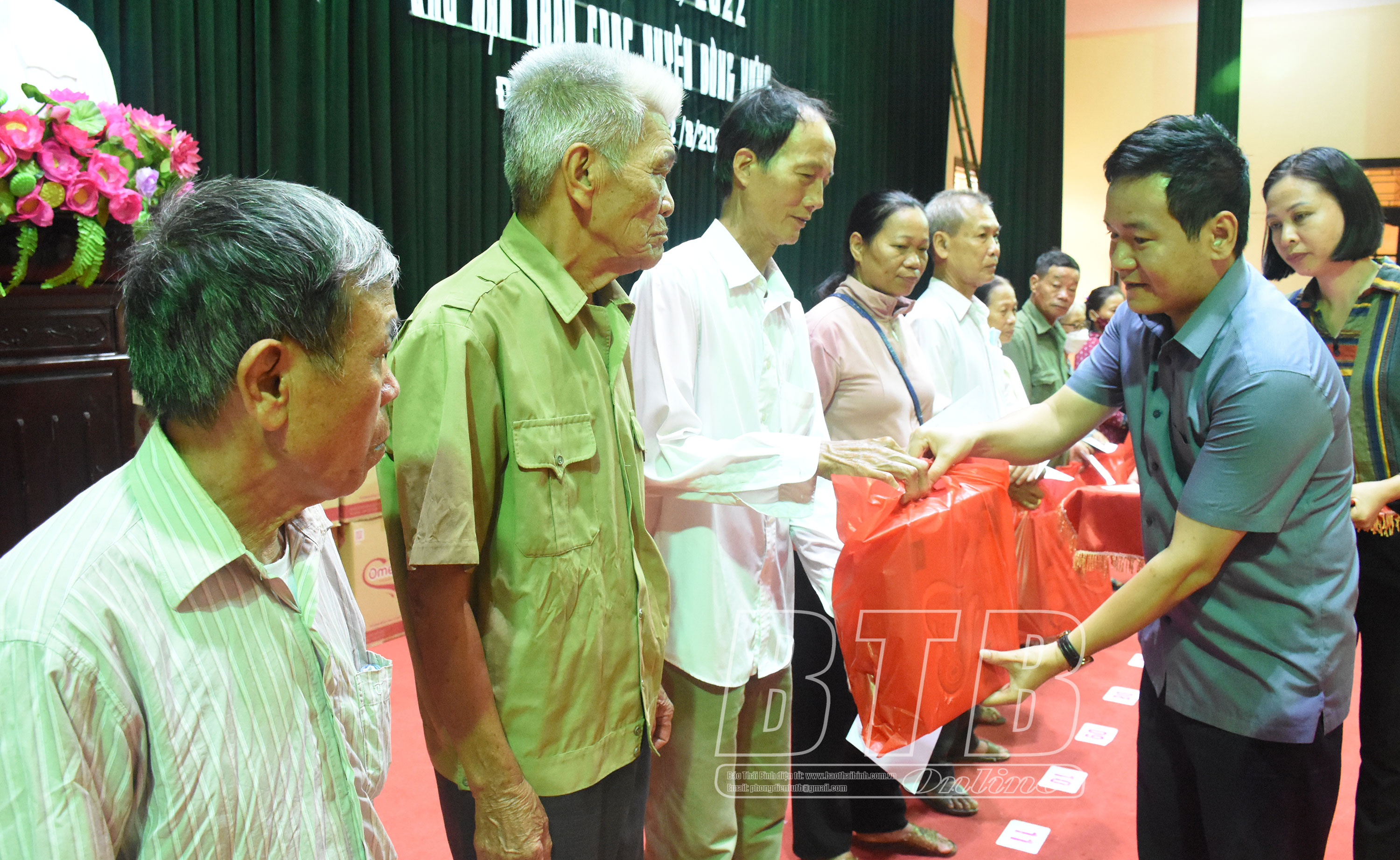 Các đồng chí lãnh đạo Ban Nội chính Tỉnh ủy, Ủy ban MTTQ tỉnh, Hội Nạn nhân chất độc da cam/Điôxin tỉnh và lãnh đạo huyện Đông Hưng đã trao 364 suất quà, mỗi suất trị giá 330.000 đồng cho các nạn nhân chất độc da cam và gia đình nạn nhân chất độc da cam có hoàn cảnh đặc biệt khó khăn trên địa bàn huyện.