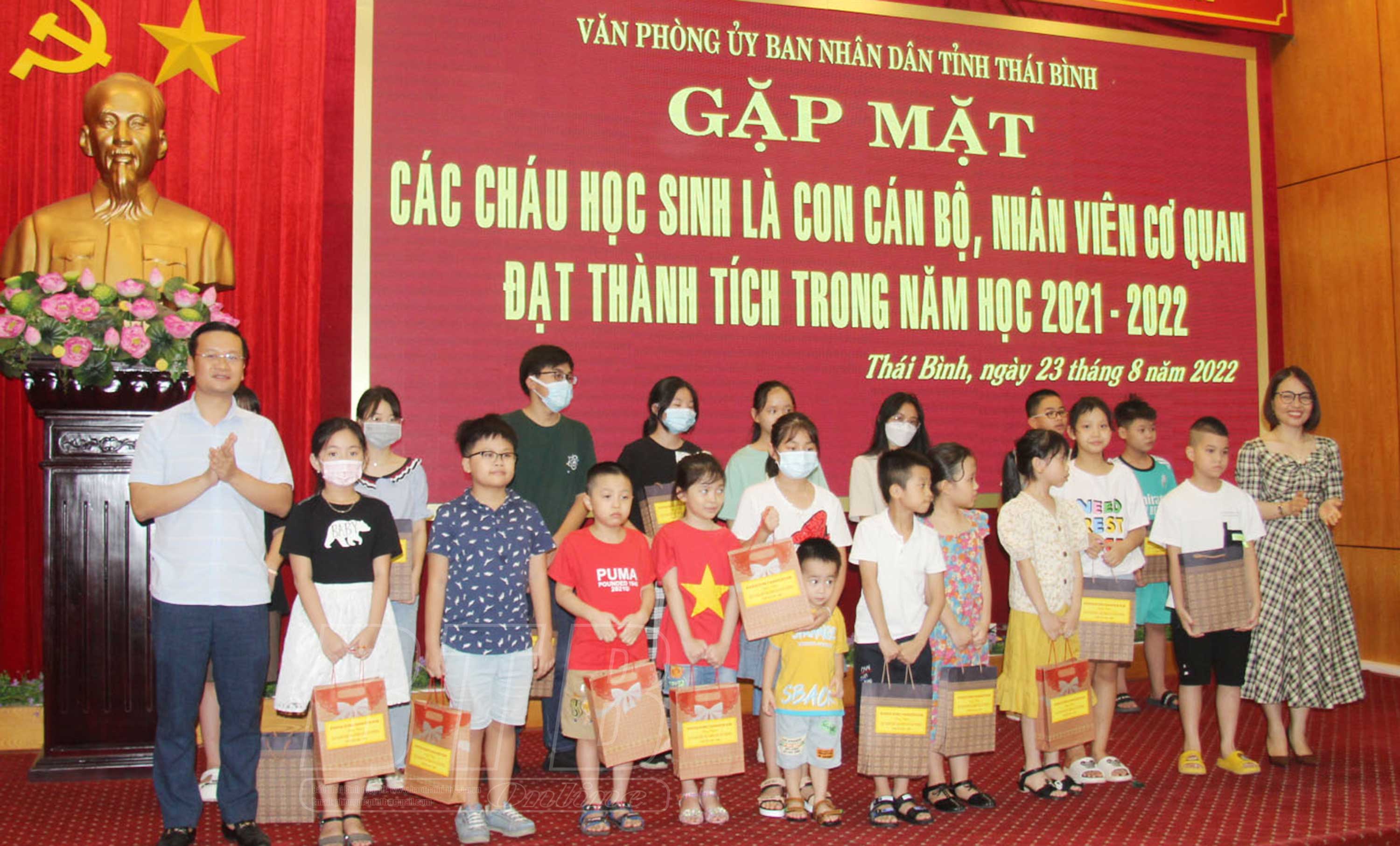 Tại hội nghị, lãnh đạo Văn phòng UBND tỉnh đã tuyên dương, khen thưởng và tặng quà các cháu học sinh có thành tích cao trong năm học 2021 - 2022 với tổng số tiền hơn trên 34 triệu đồng. Đây là hoạt động ý nghĩa nhằm động viên, khích lệ các cháu học sinh tiếp tục nỗ lực cố gắng, đạt nhiều thành tích cao hơn nữa trong năm học mới 2022 - 2023.