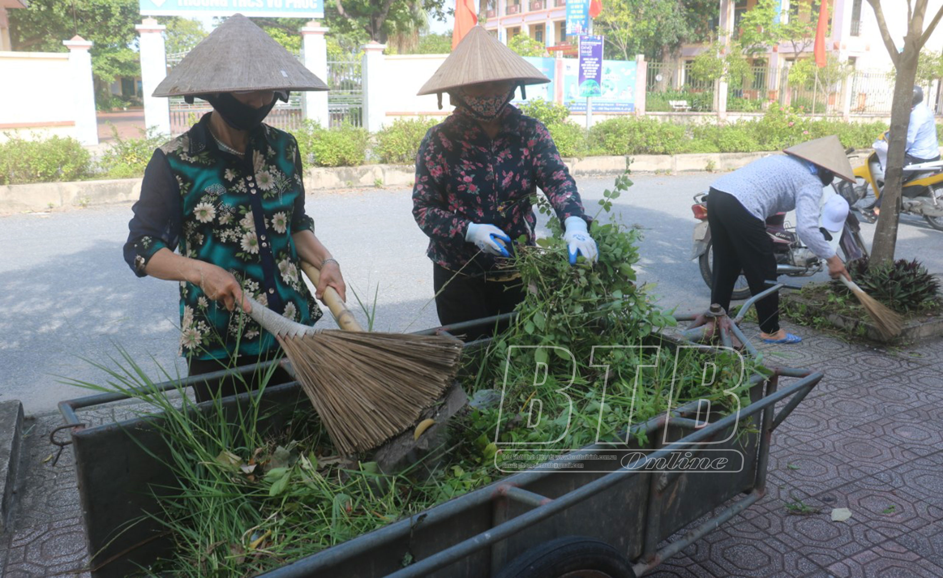 Hội viên phụ nữ xã Vũ Phúc (thành phố) tham gia dọn vệ sinh môi trường.