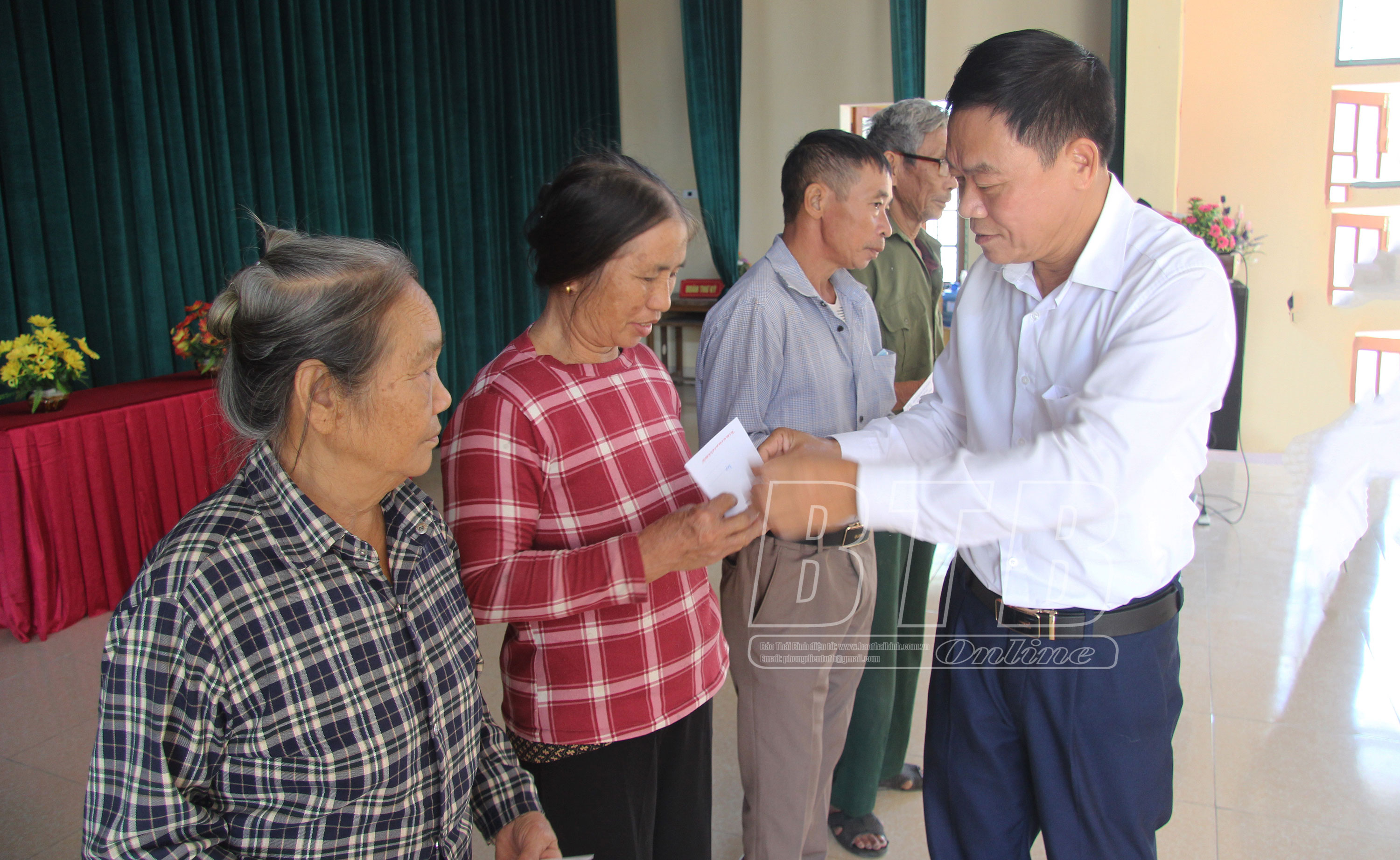 Đại diện lãnh đạo Hội Chữ thập đỏ huyện Tiền Hải trao quà cho các nông dân có hoàn cảnh khó khăn tại xã Nam Hà.