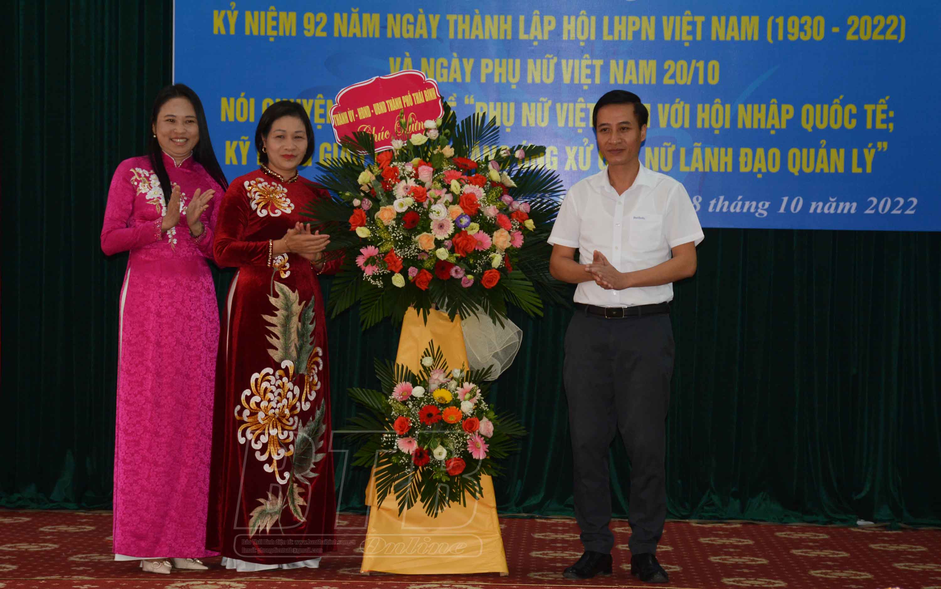 Lãnh đạo thành phố Thái Bình tặng hoa chúc mừng.