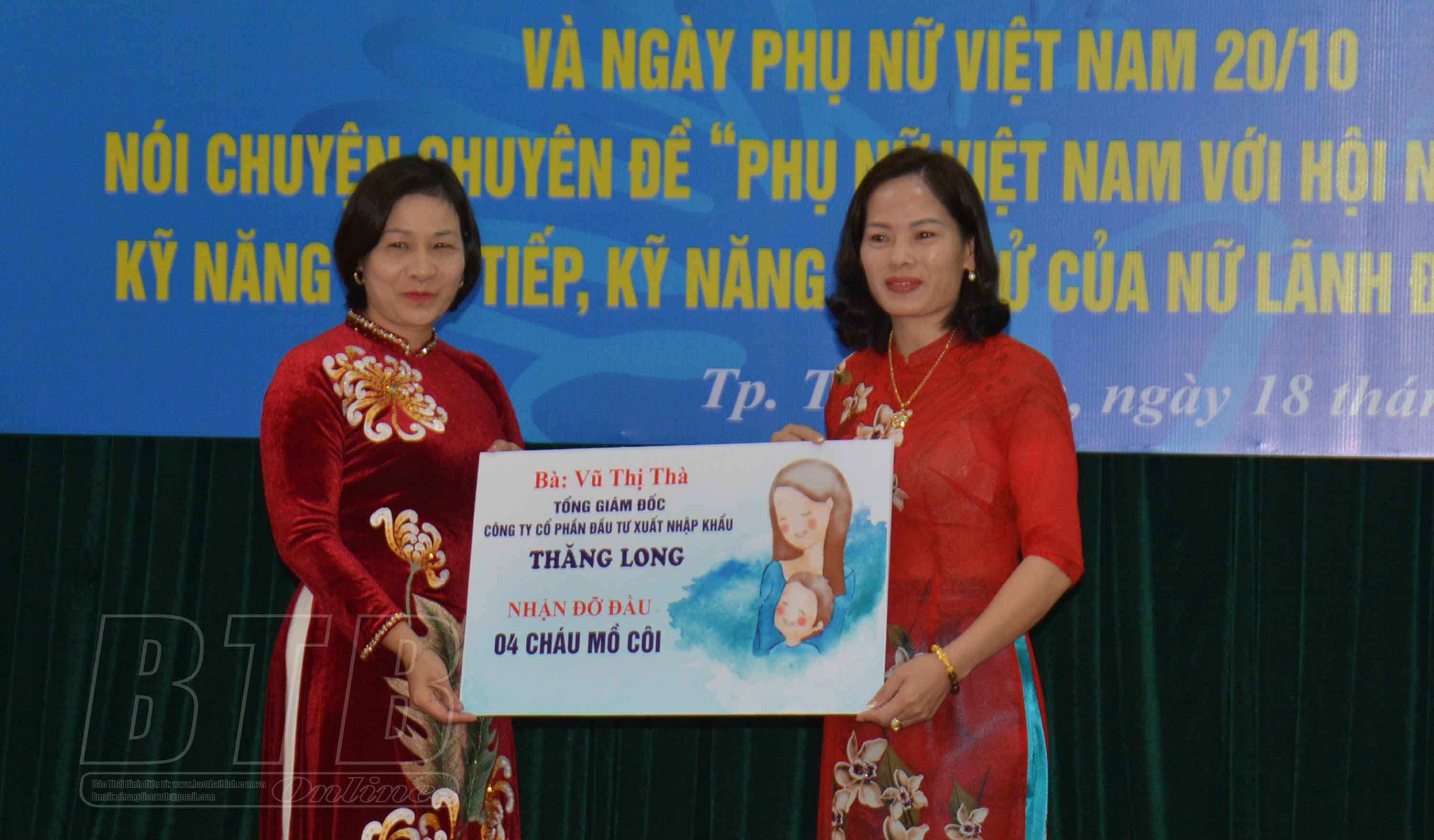Hội Liên hiệp Phụ nữ thành phố Thái Bình tiếp nhận tài trợ cho chương trình.