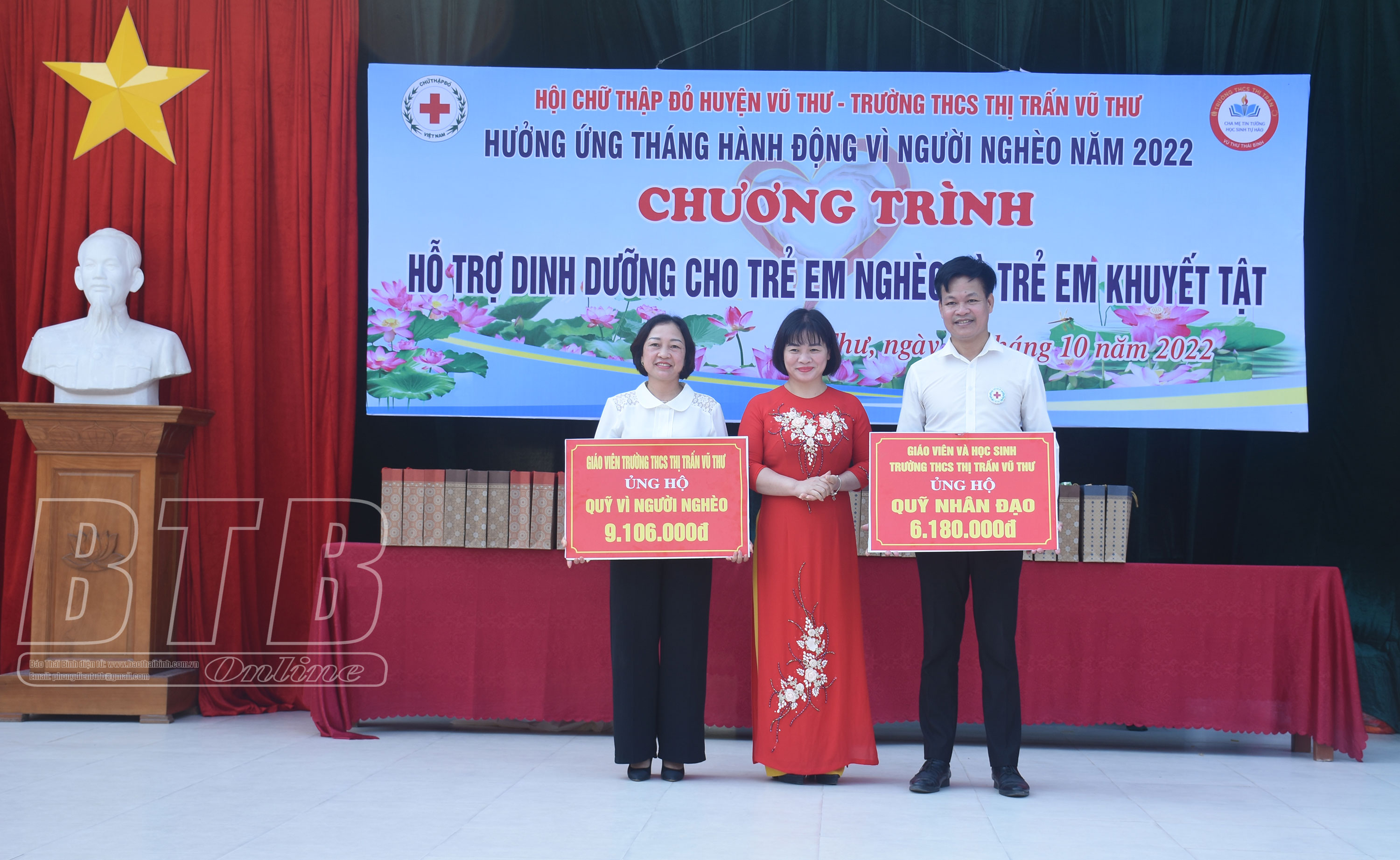 Nhân dịp này, Trường THCS thị trấn Vũ Thư đã ủng hộ cho quỹ nhân đạo và quỹ vì người nghèo của huyện tổng số tiền trên 15 triệu đồng.