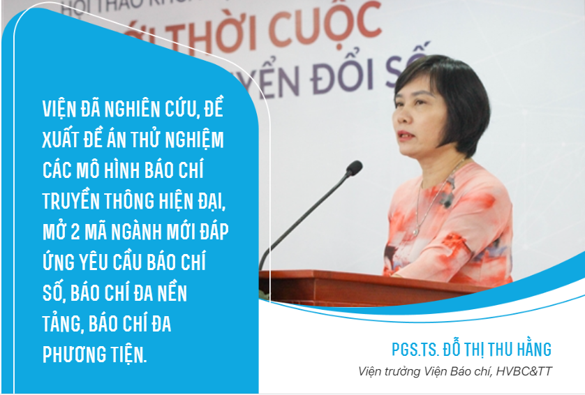 Kế thừa thành tựu và giá trị truyền thống từ Khoa Báo chí và Viện Nghiên cứu Báo chí - Truyền thông, Viện Báo chí đã nghiên cứu và đề xuất những đề án thử nghiệm các mô hình báo chí truyền thông hiện đại, mở hai mã ngành mới đáp ứng yêu cầu báo chí số, báo chí đa nền tảng, báo chí đa phương tiện. "Viện Báo chí cũng xuất bản giáo trình, sách chuyên khảo, sách tham khảo; đổi mới nội dung, phương thức đào tạo; đồng thời tiếp tục nghiên cứu và tổ chức nghiên cứu với sự tham gia của đội ngũ hàng trăm cán bộ, giảng viên, cộng tác viên nghiên cứu, hàng ngàn nghiên cứu sinh, học viên sau đại học, các sinh viên bậc cử nhân ưu tú. Viện đã nỗ lực và bước đầu thành công trong phát triển lý luận báo chí và định hướng phát triển báo chí cách mạng Việt Nam trong mọi giai đoạn, đặc biệt là trong kỷ nguyên số hiện nay!" - PGS.TS. Đỗ Thị Thu Hằng chia sẻ.