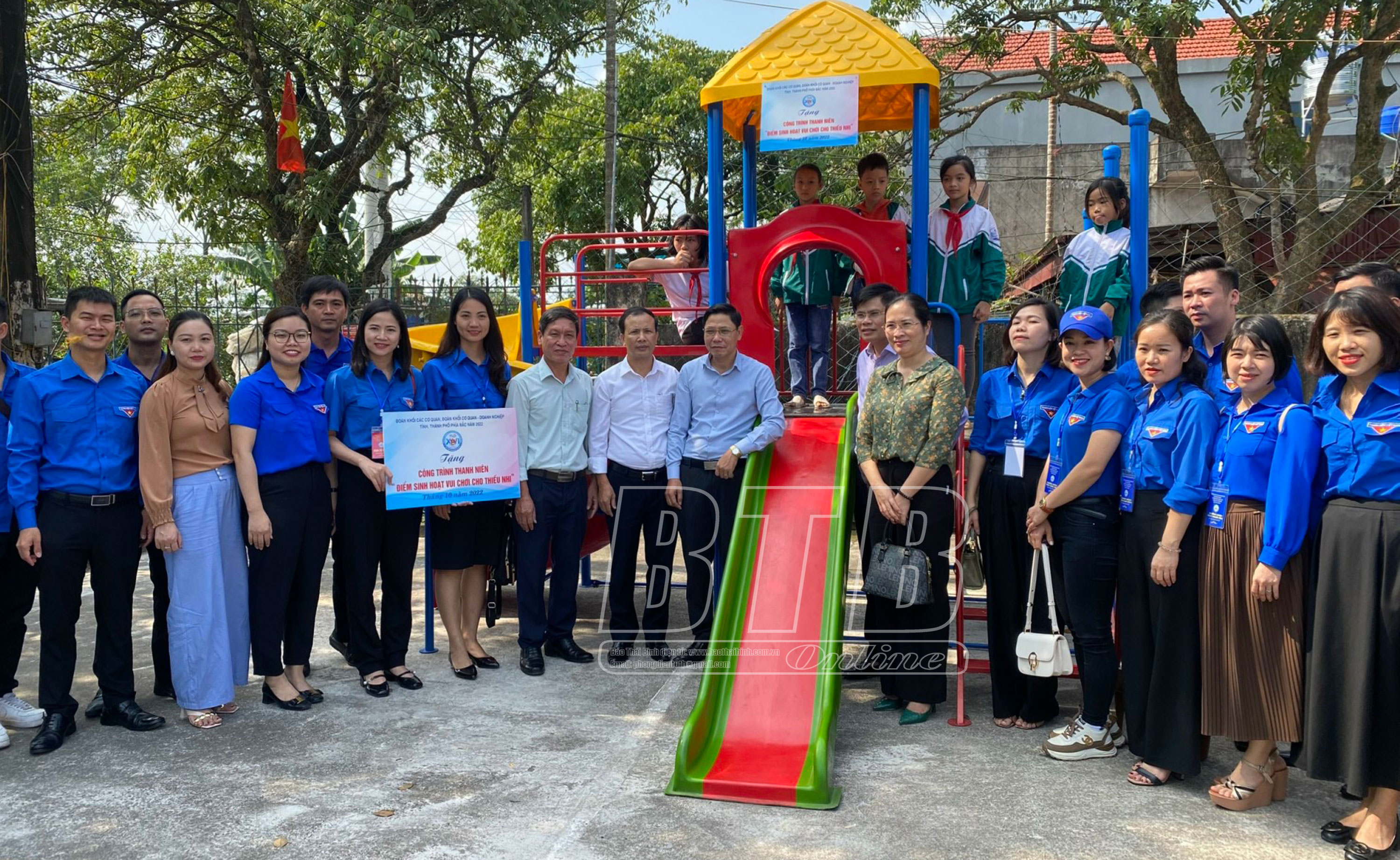 Đại diện các đơn vị Đoàn khối cơ quan và doanh nghiệp các tỉnh, thành phố phía Bắc bàn giao điểm sinh hoạt vui chơi cho trẻ em tại xã Nhân Khang (Lý Nhân).