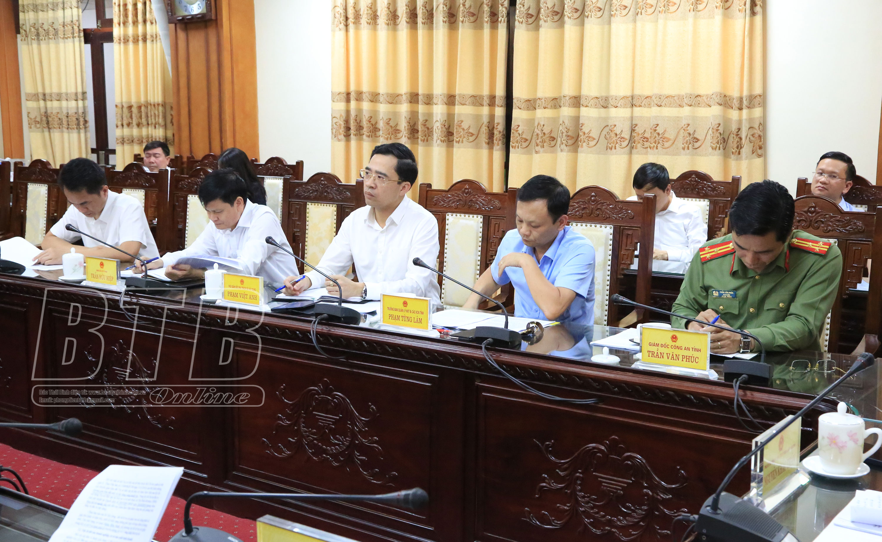 Dự họp có các đồng chí: Vũ Kim Cứ, Ủy viên Ban Thường vụ Tỉnh ủy, Giám đốc Sở Kế hoạch và Đầu tư; Thượng tá Trần Văn Phúc, Ủy viên Ban Thường vụ Tỉnh ủy, Giám đốc Công an tỉnh; lãnh đạo một số sở, ngành.