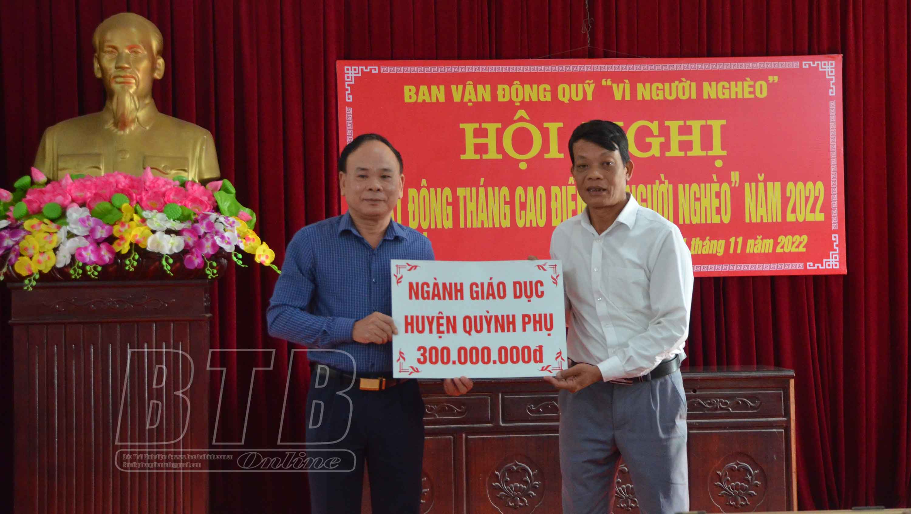 Ngành giáo dục và đào tạo huyện Quỳnh Phụ ủng hộ quỹ “Vì người nghèo” của huyện để chăm lo cho người nghèo, người có hoàn cảnh khó khăn.